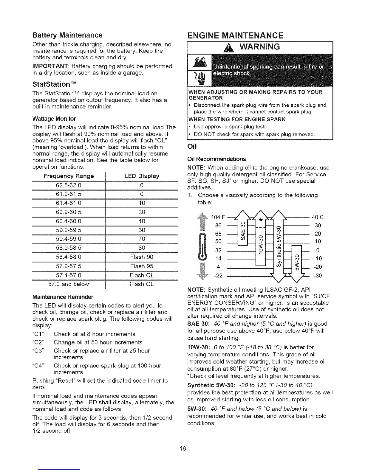 Synthetic 5W-30:-20 to 120 °F (-30 to 40 °C)