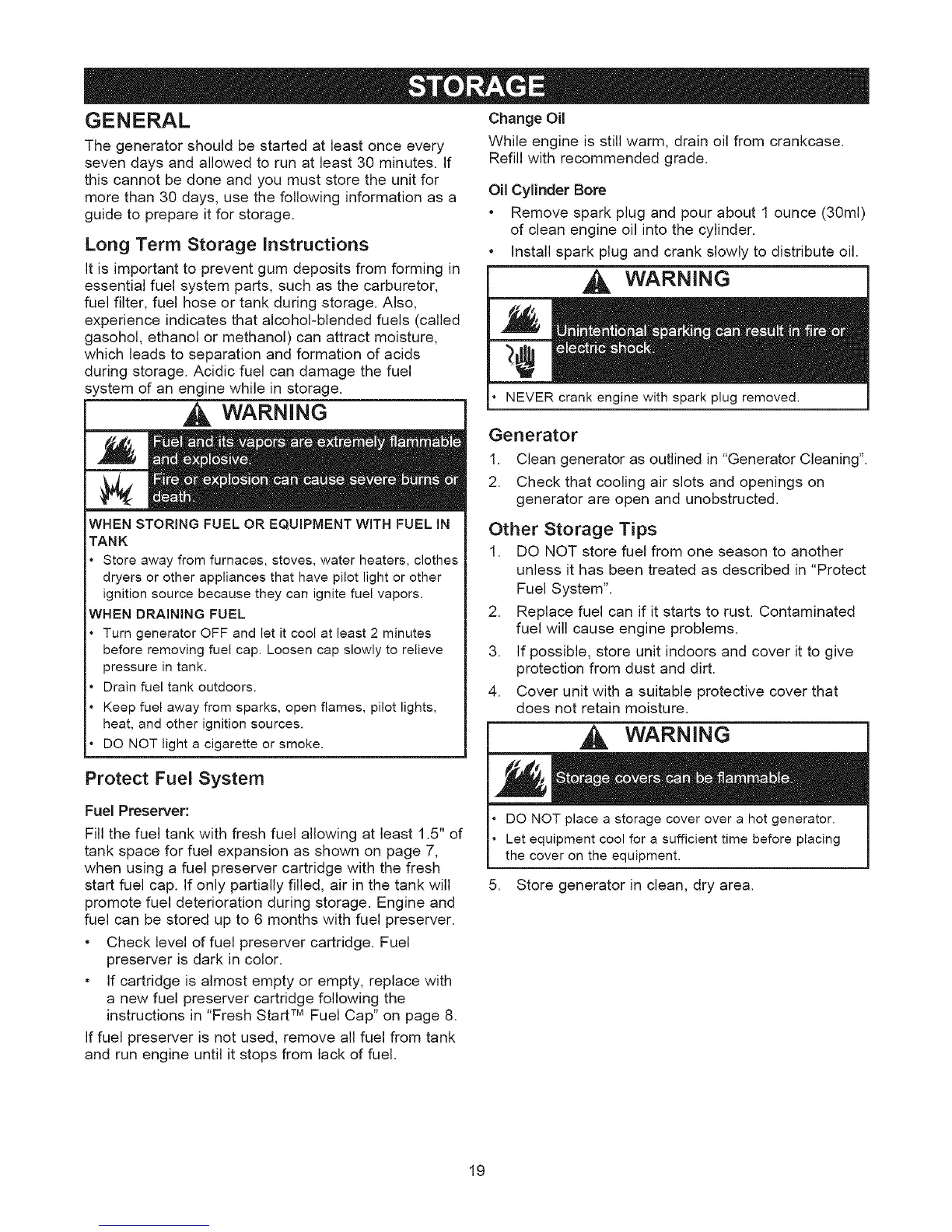 fuel filter, fuel hose or tank during storage. Also,