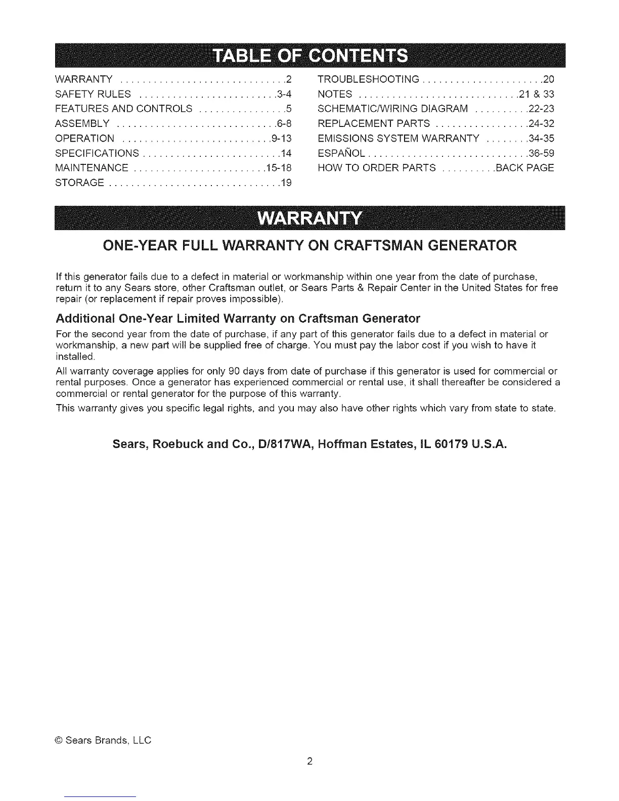 ONE=YEAR FULL WARRANTY ON CRAFTSMAN GENERATOR