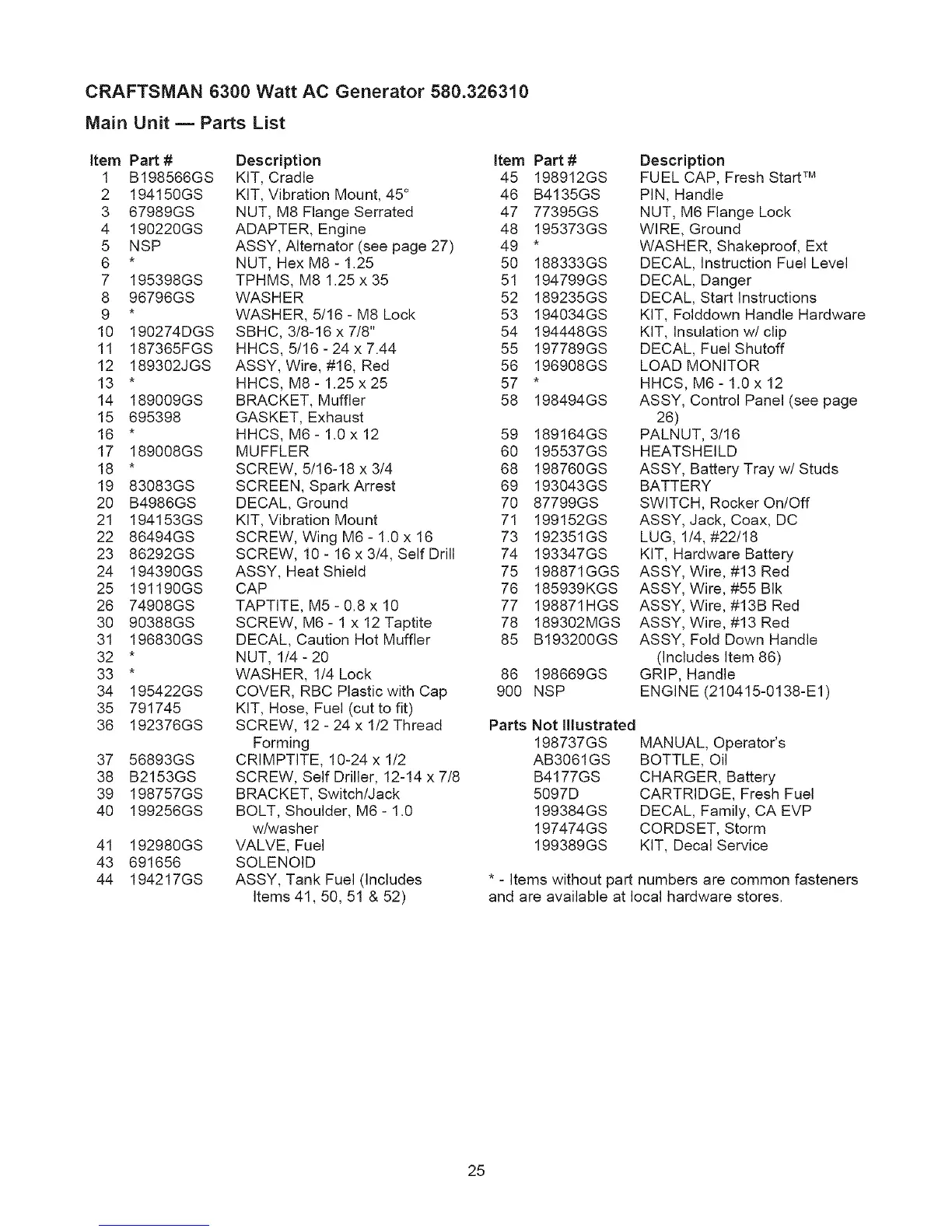 CRAFTSMAN 6300 Watt AC Generator 580.326310