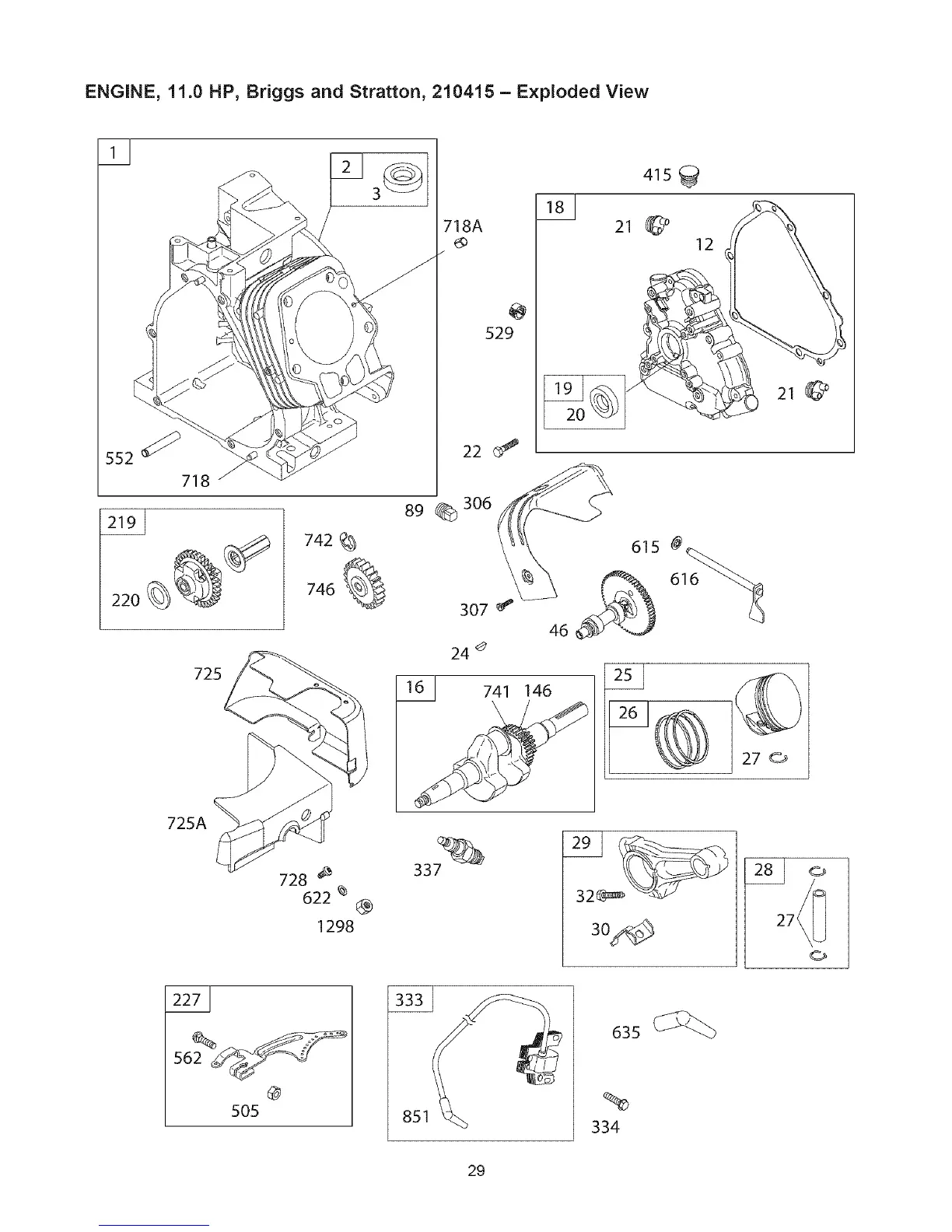 ENGINE, 11.0 HP, Briggs and Stratton, 210415 = Exploded View