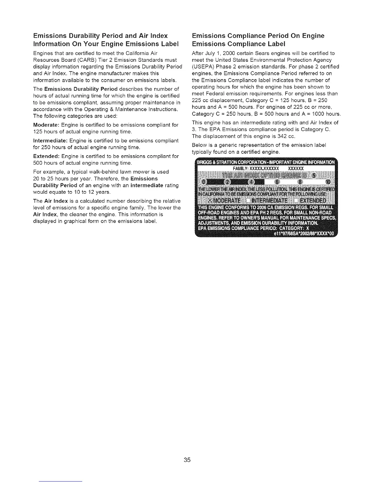 Information On Your Engine Emissions Label