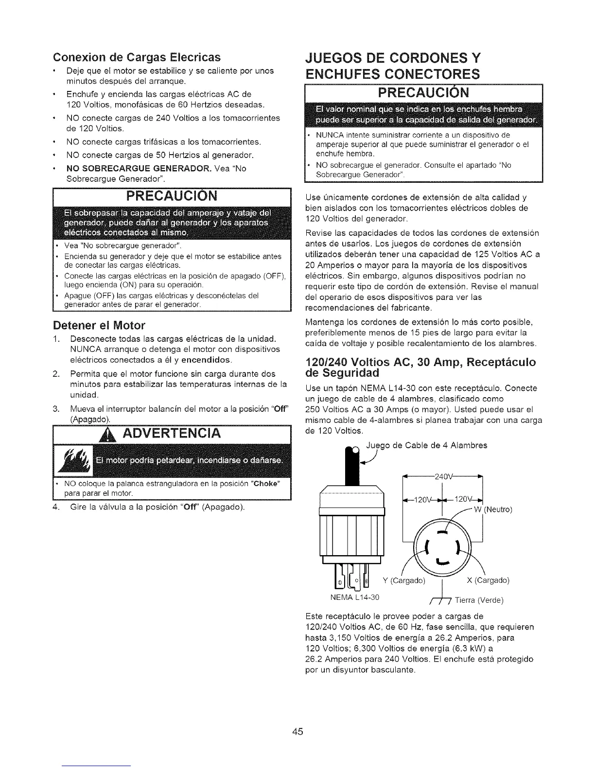NO conecte cargas de 240 Voltios a los tomacorrientes