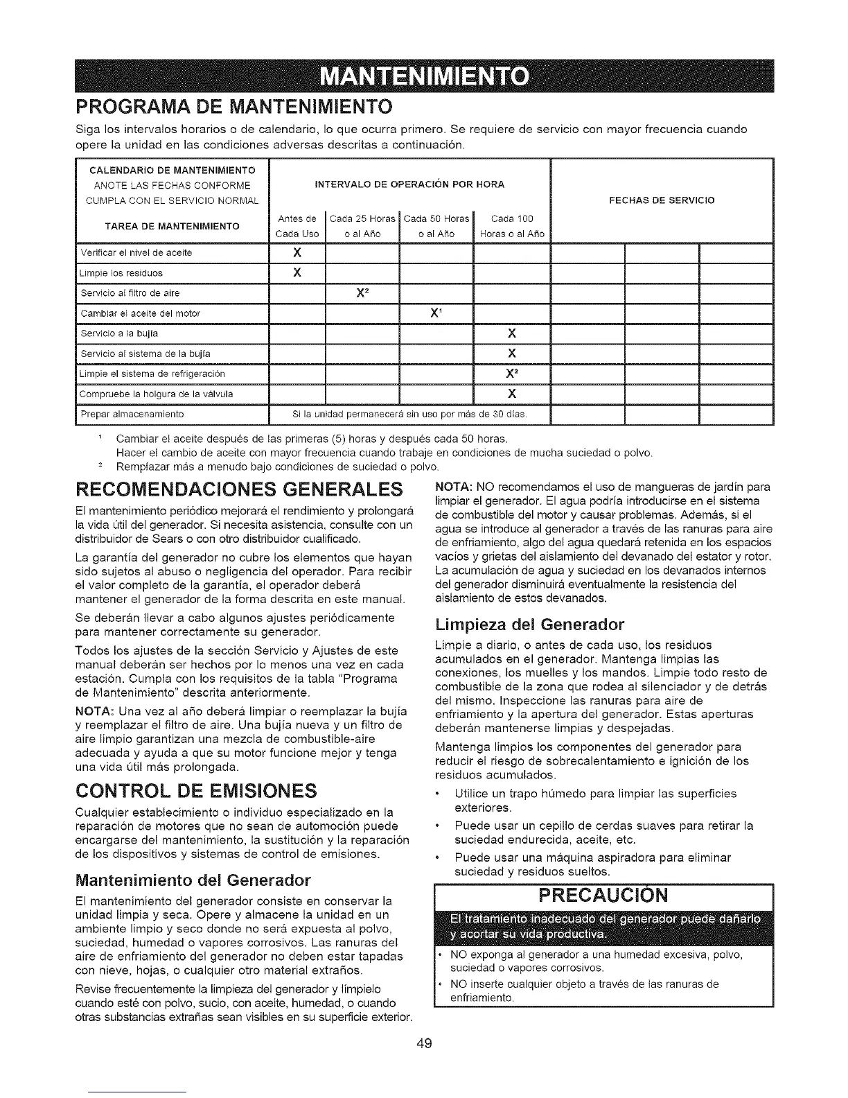1 Cambiar el aceite despues de tas primeras (5) horas y despues cada 50 horas.