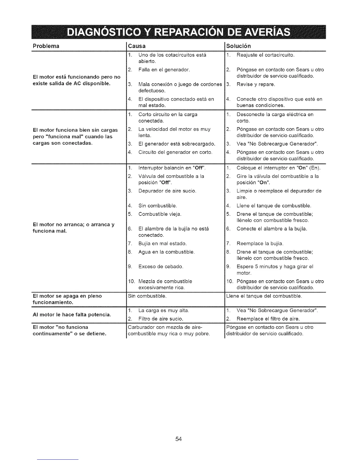 10. Pongase en contacto con Sears u otro