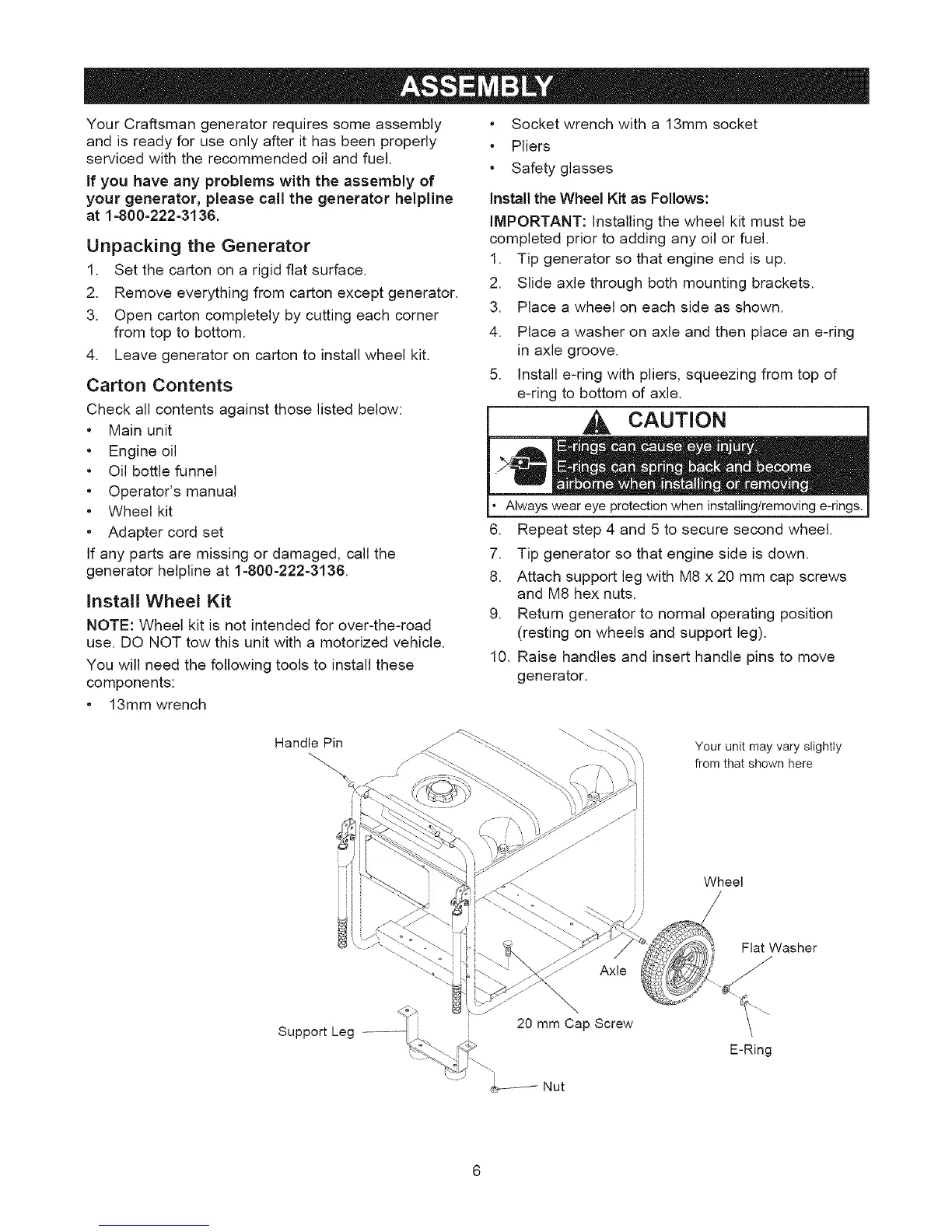Your Craftsman generator requires some assembly