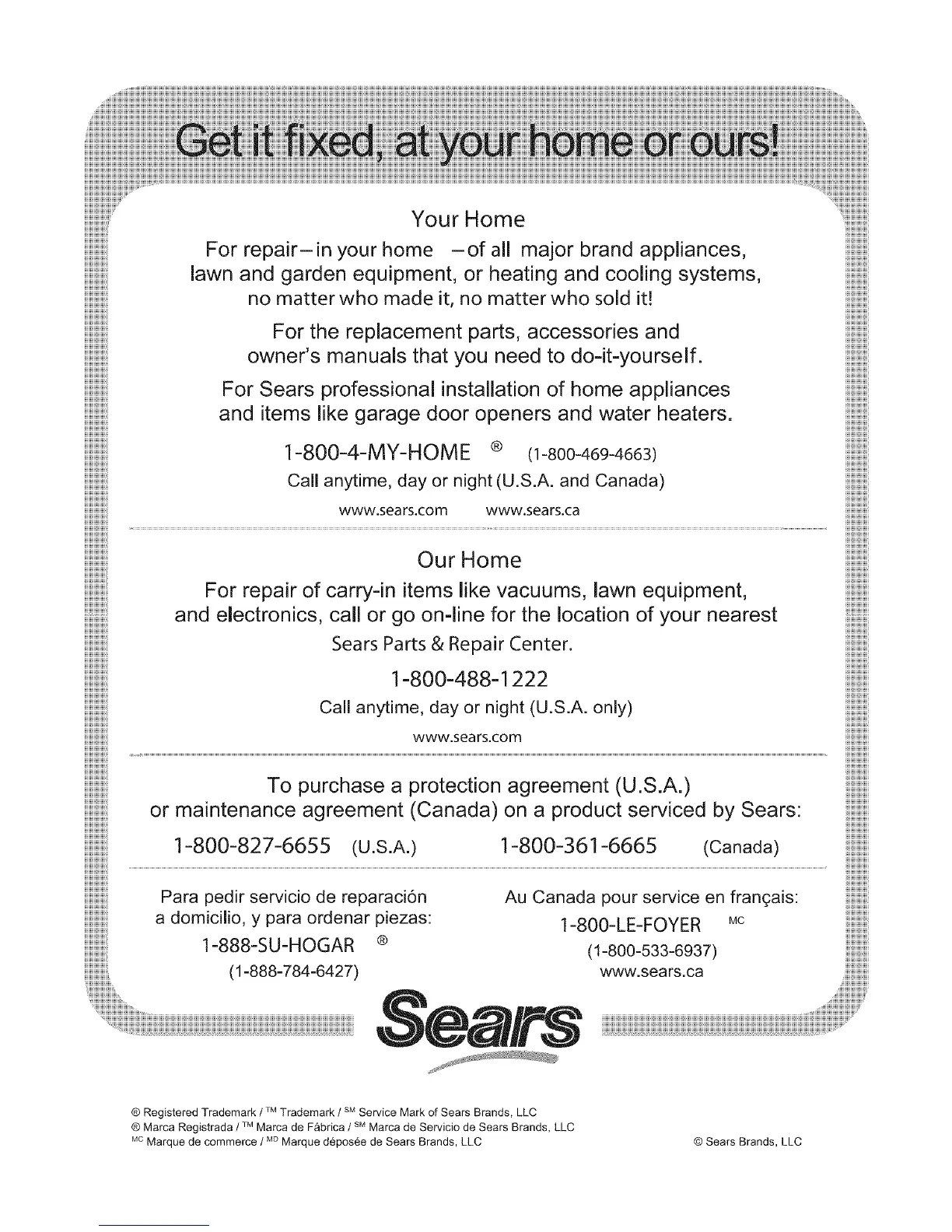 ® Marca Registrada / TM Marca de F_brica / sM Marca de Servicio de Sears Brands, LLC