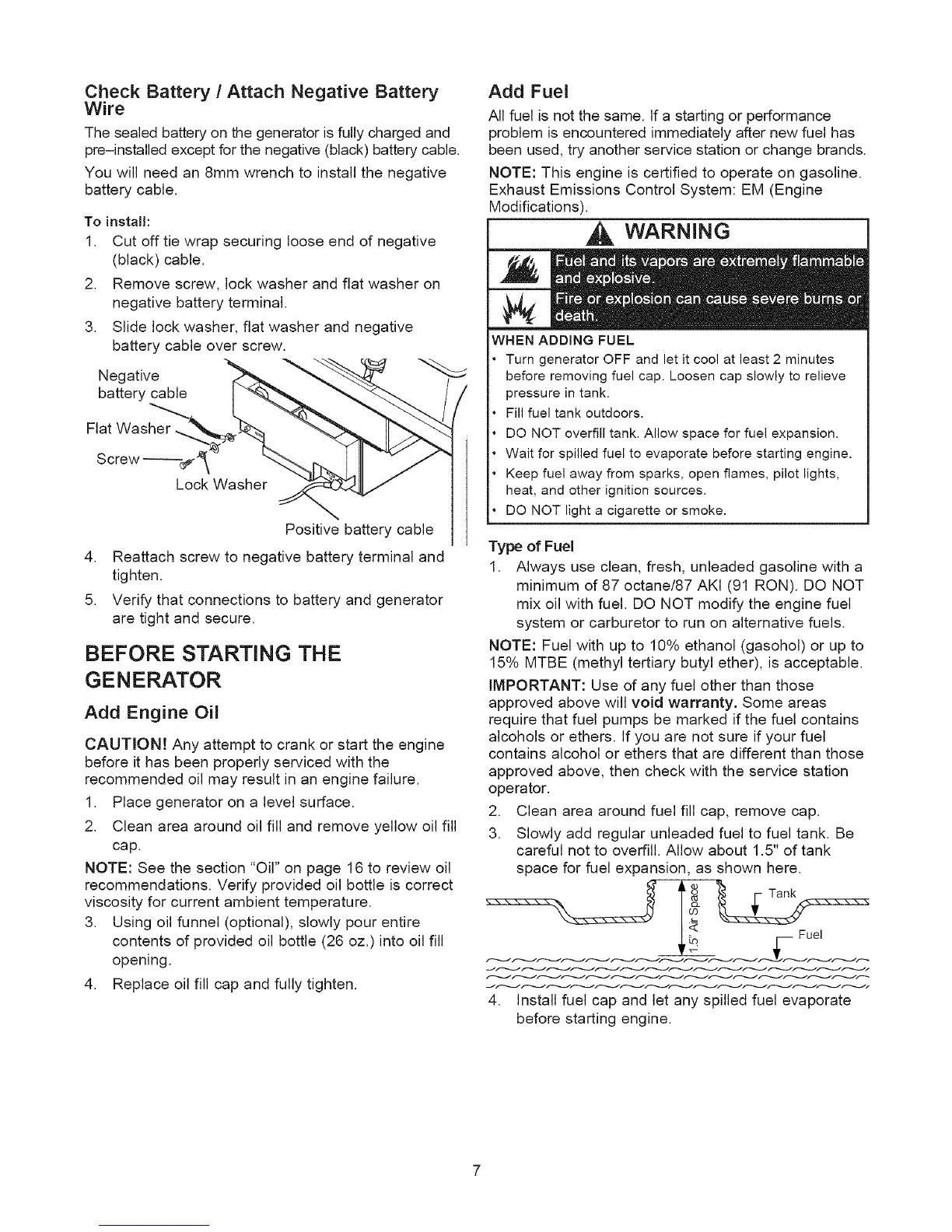 NOTE: Fuel with up to 10% ethanol (gasohol) or up to