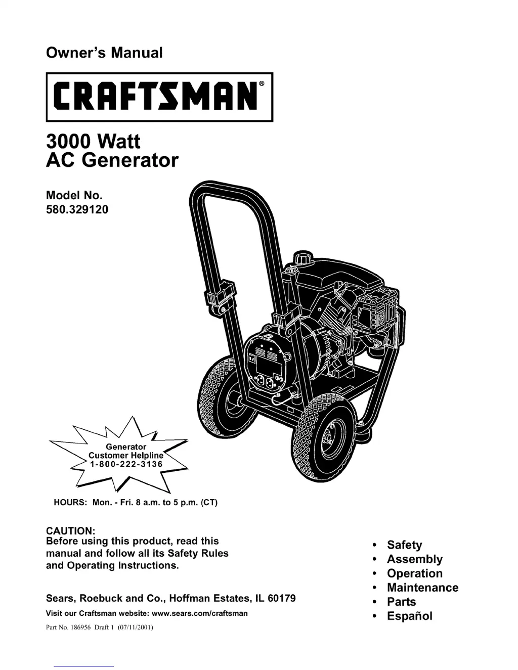 If your Craftsman Portable Generator's engine won't start or runs roughly, several factors could be at play. First, ensure the Run/Stop Switch is set to “RUN”. Other potential causes include a dirty air cleaner (clean or replace it), an empty fuel tank (fill it), stale gasoline (drain and refill with fresh fuel), or a disconnected spark plug wire (connect it). Also, the spark plug may be bad (replace it). If there is water in the gasoline, drain the tank and carburetor, then add fresh fuel. If the engine is overprimed, wait 5 minutes before trying to restart it.