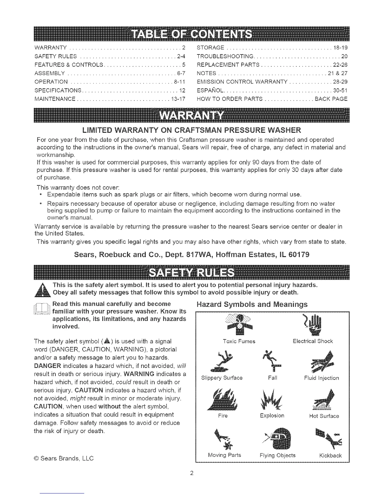 Warranty service is available by returning the pressure washer to the nearest Sears service center or dealer in