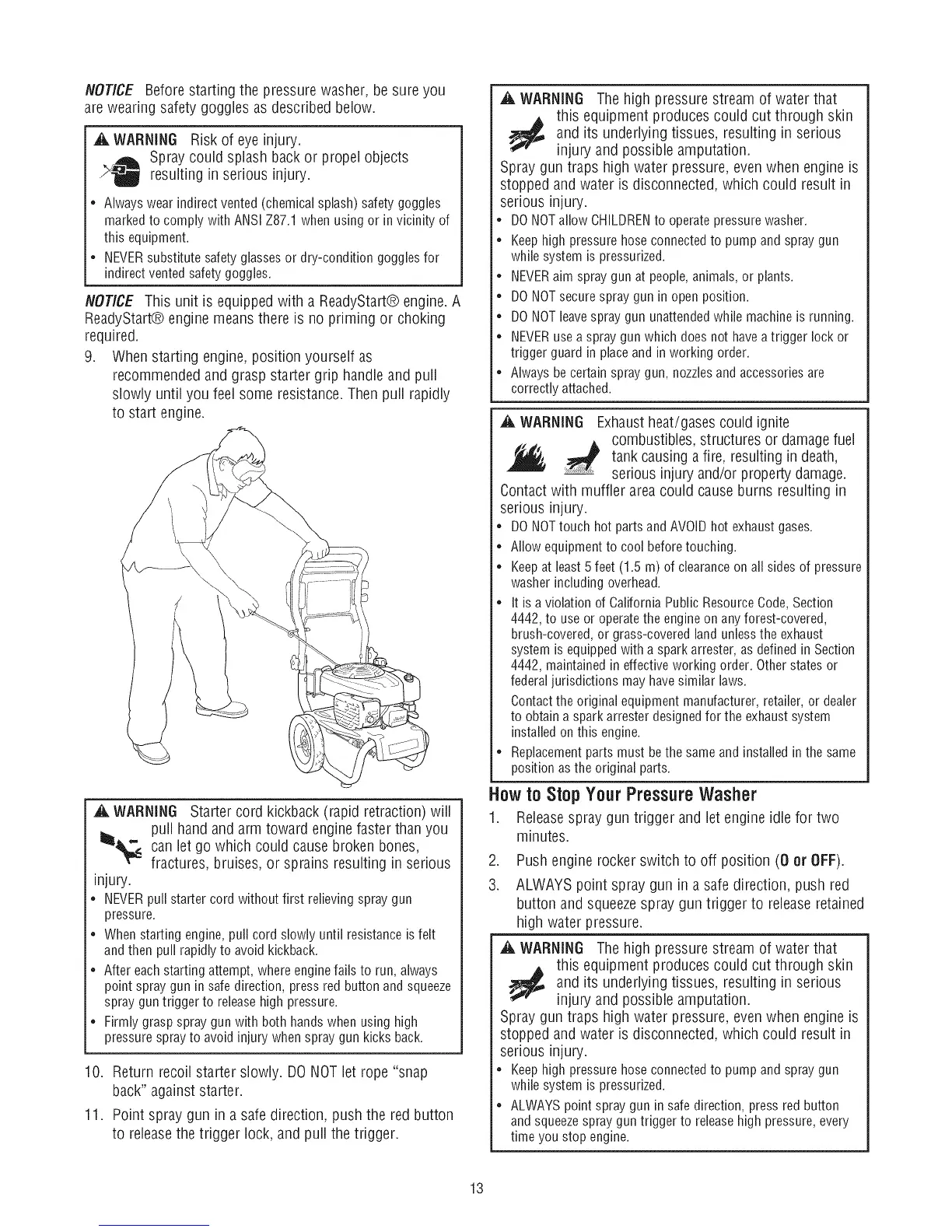 NOTICE Before starting the pressure washer, be sure you