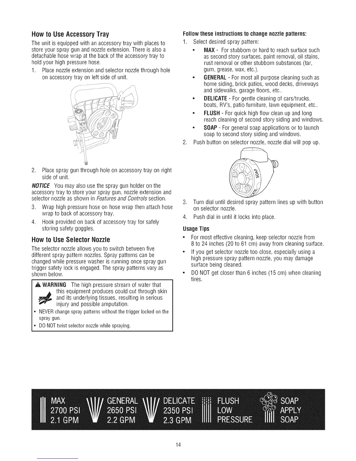 * For most effective cleaning, keep selector nozzlefrom