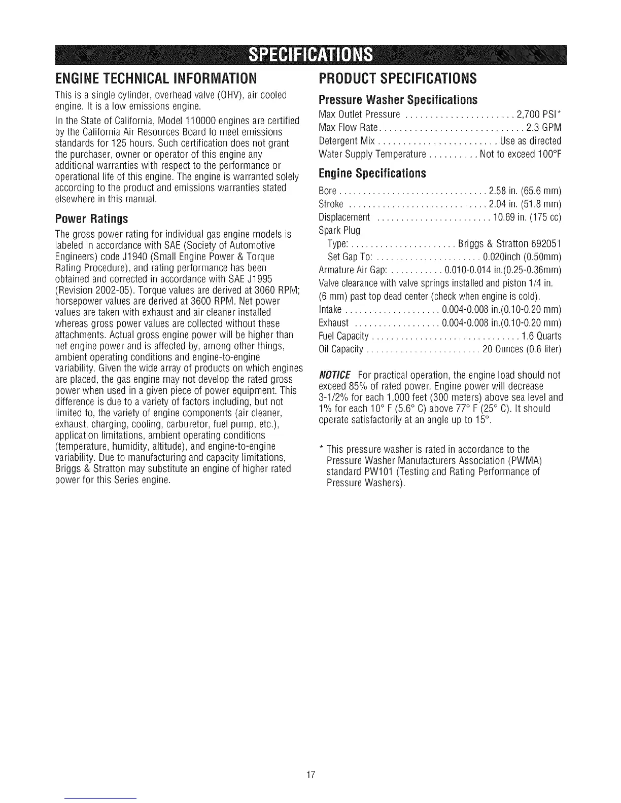 PressureWasherSpecifications