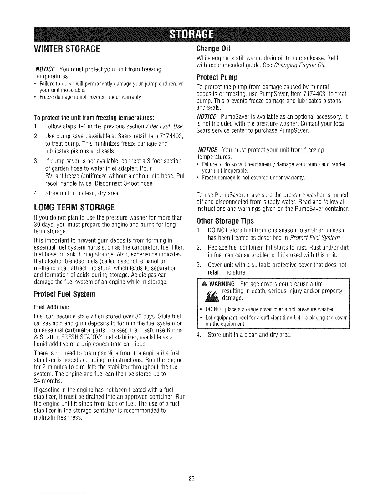 deposits or freezing, use PumpSaver, item 7174403, to treat