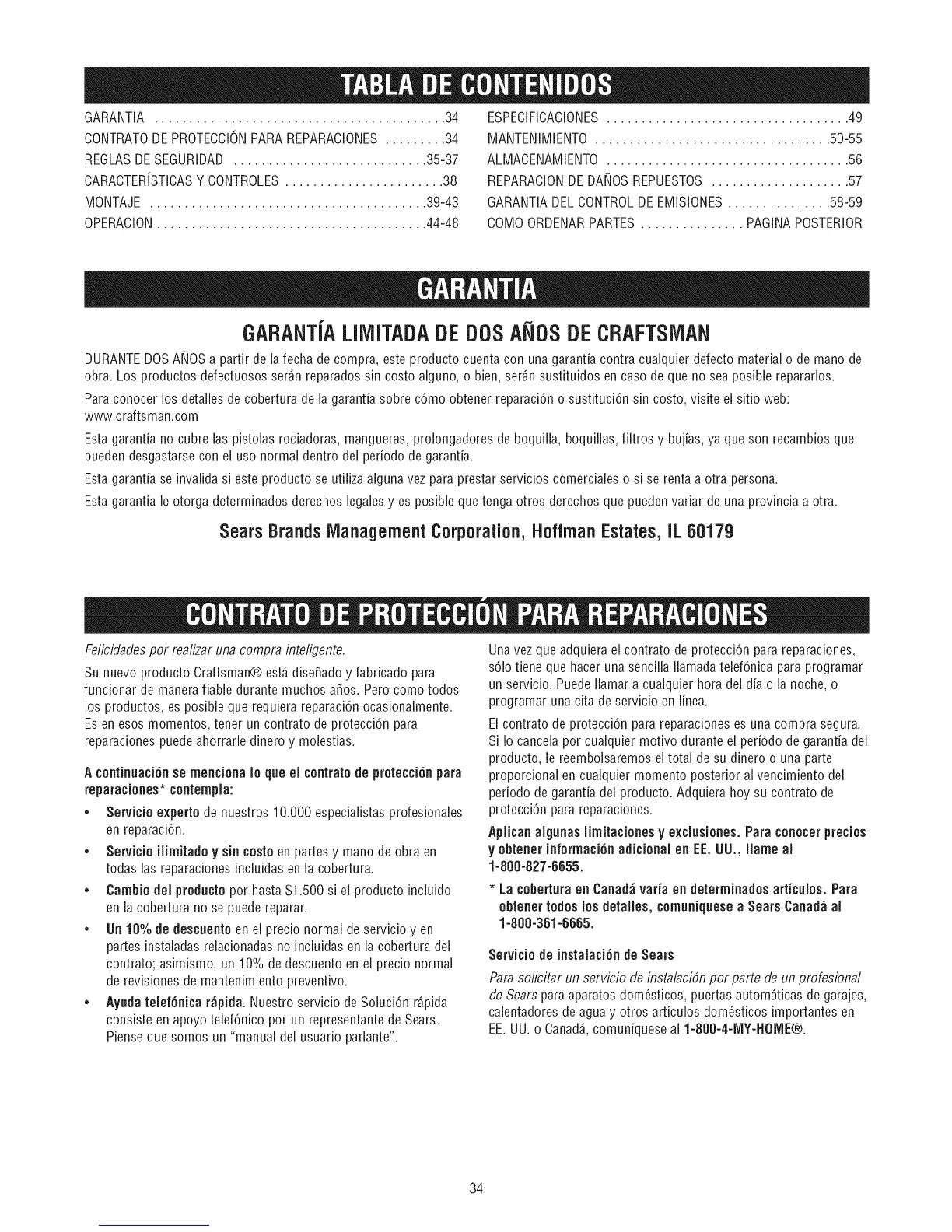 GARANTiALliVilTADADE DOSA IOS DE CRAFTSMAN