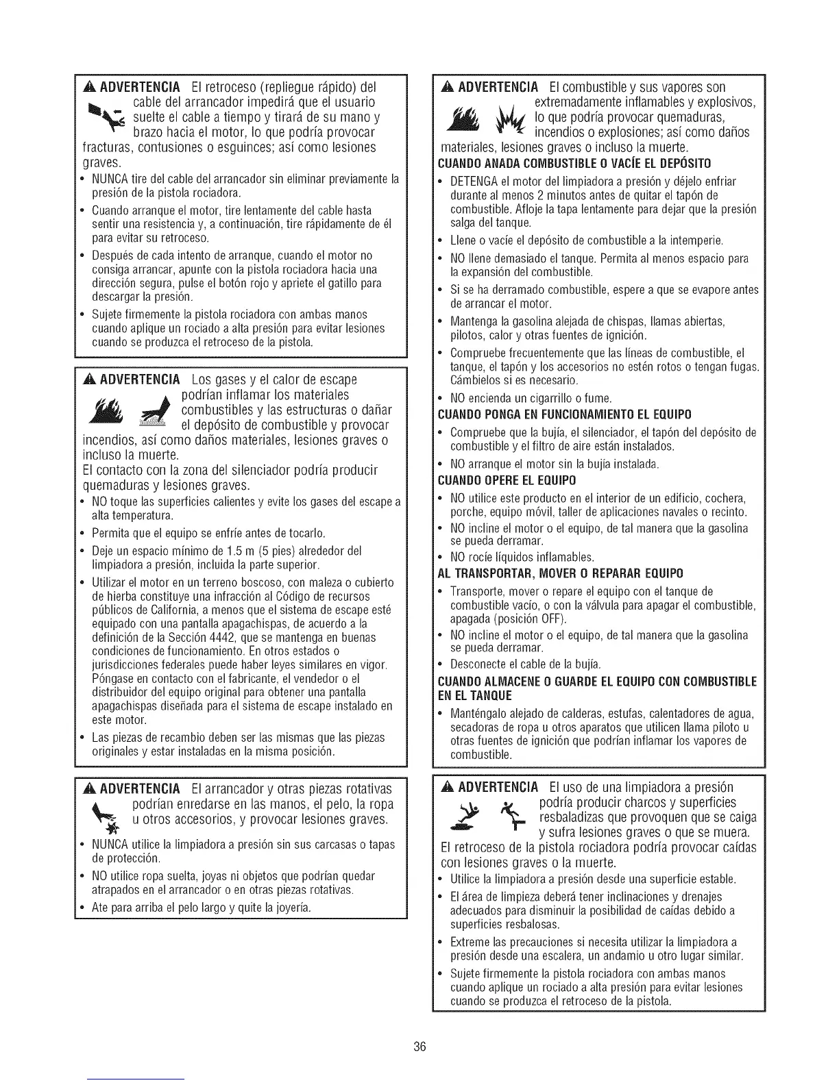 A ADVERTENCIA Ei uso de una limpiadora a presi6n