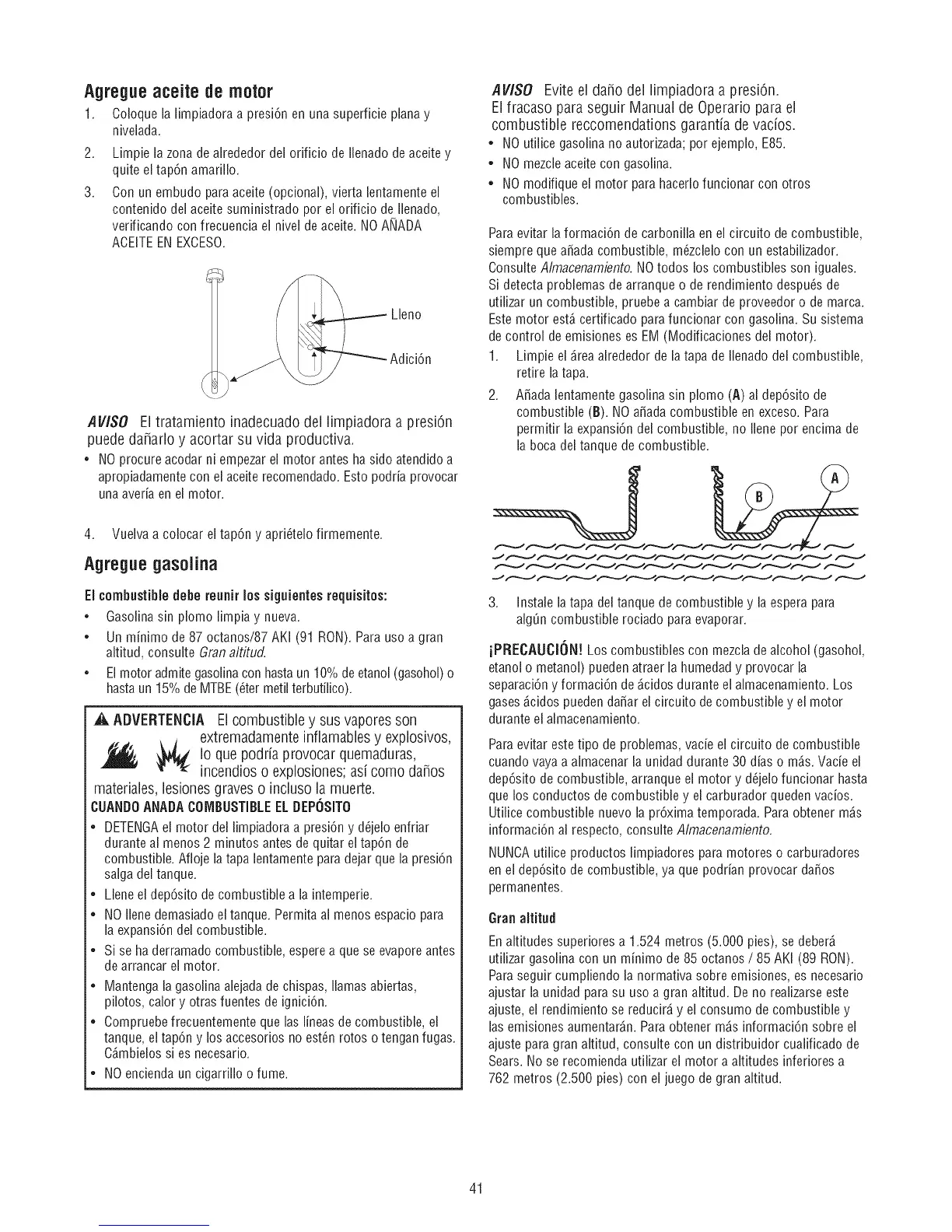 Sears.No se recomienda utilizar el motor a altitudes inferiores a