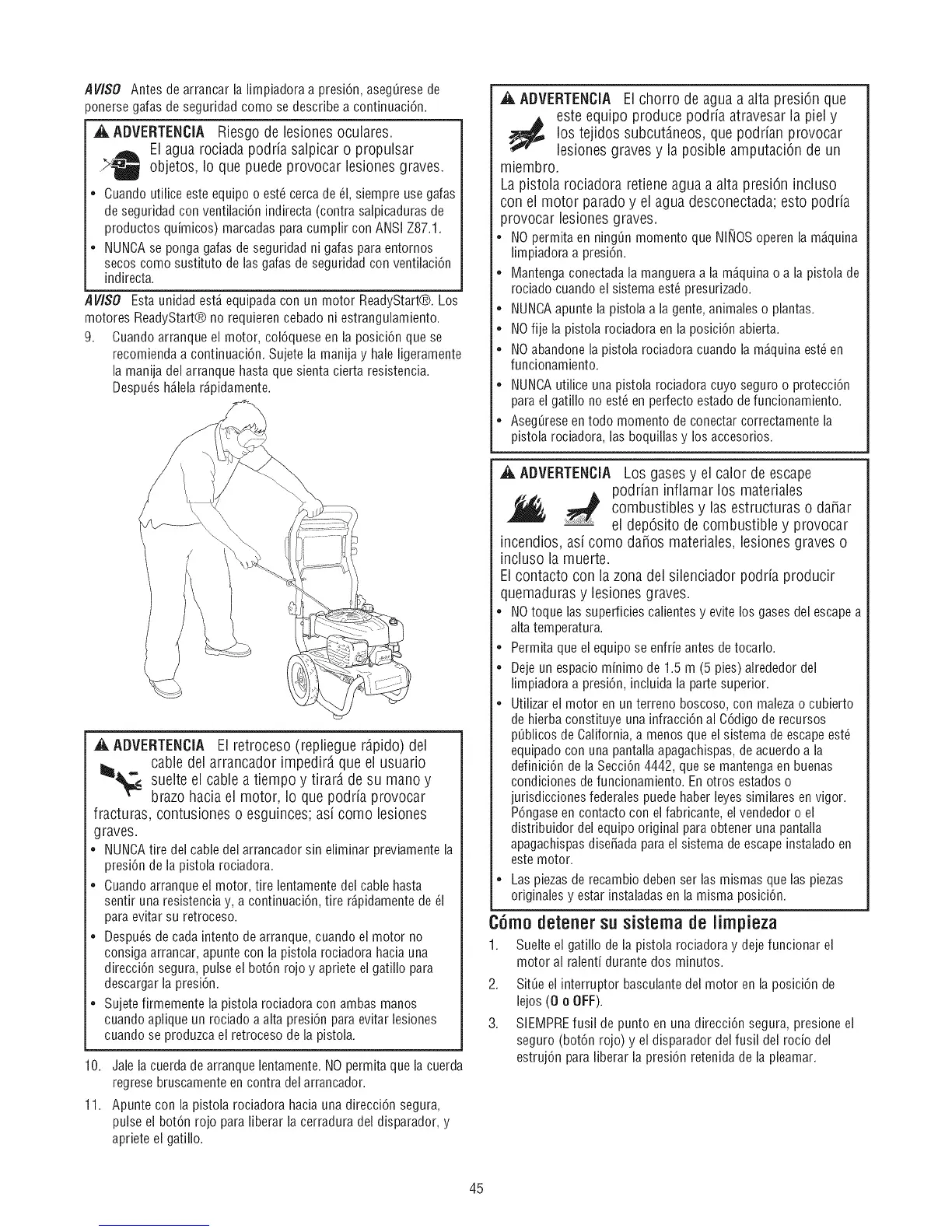 consiga arrancar, apunte con la pistola rociadora hacia una