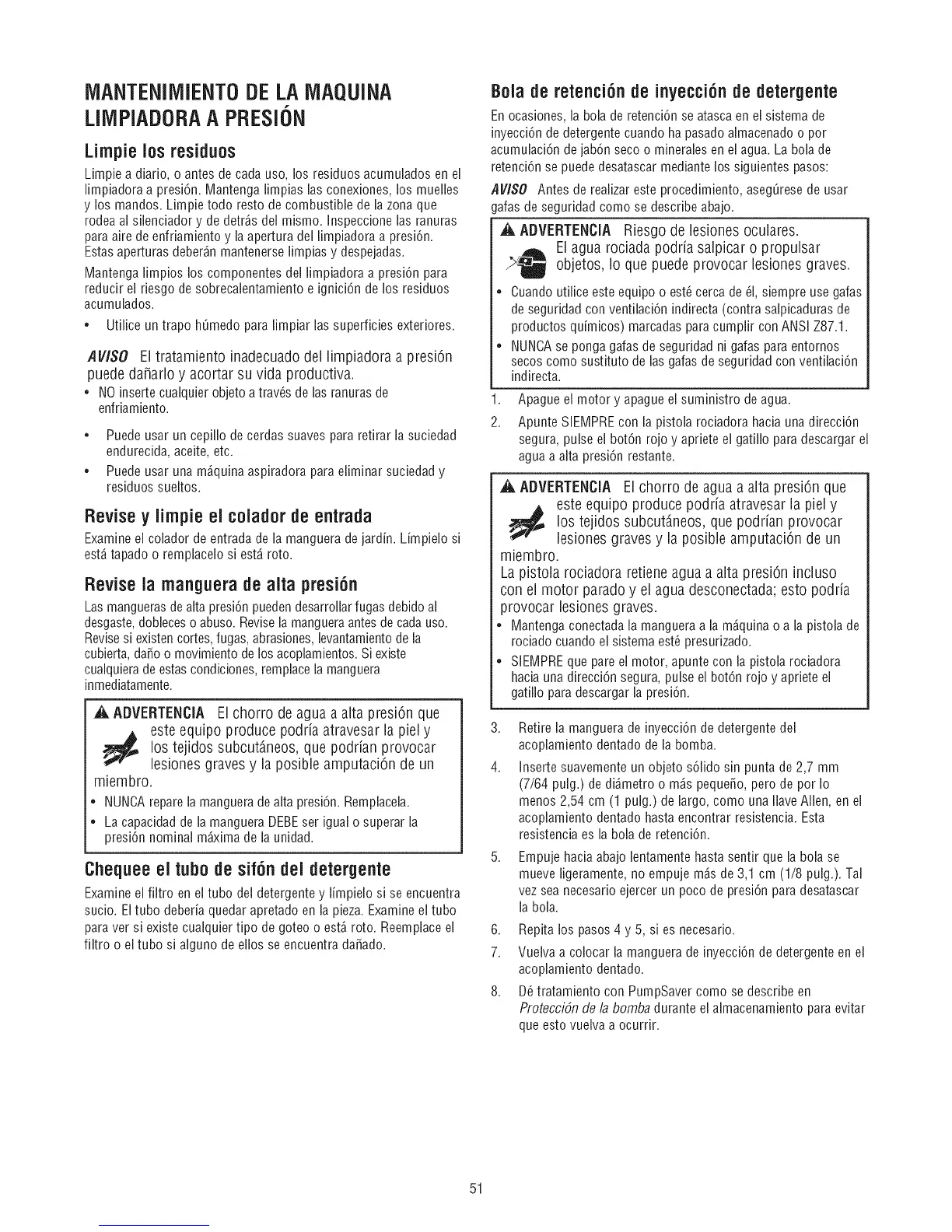 limpiadora a presi6n. Mantenga limpias las conexiones, los muelles