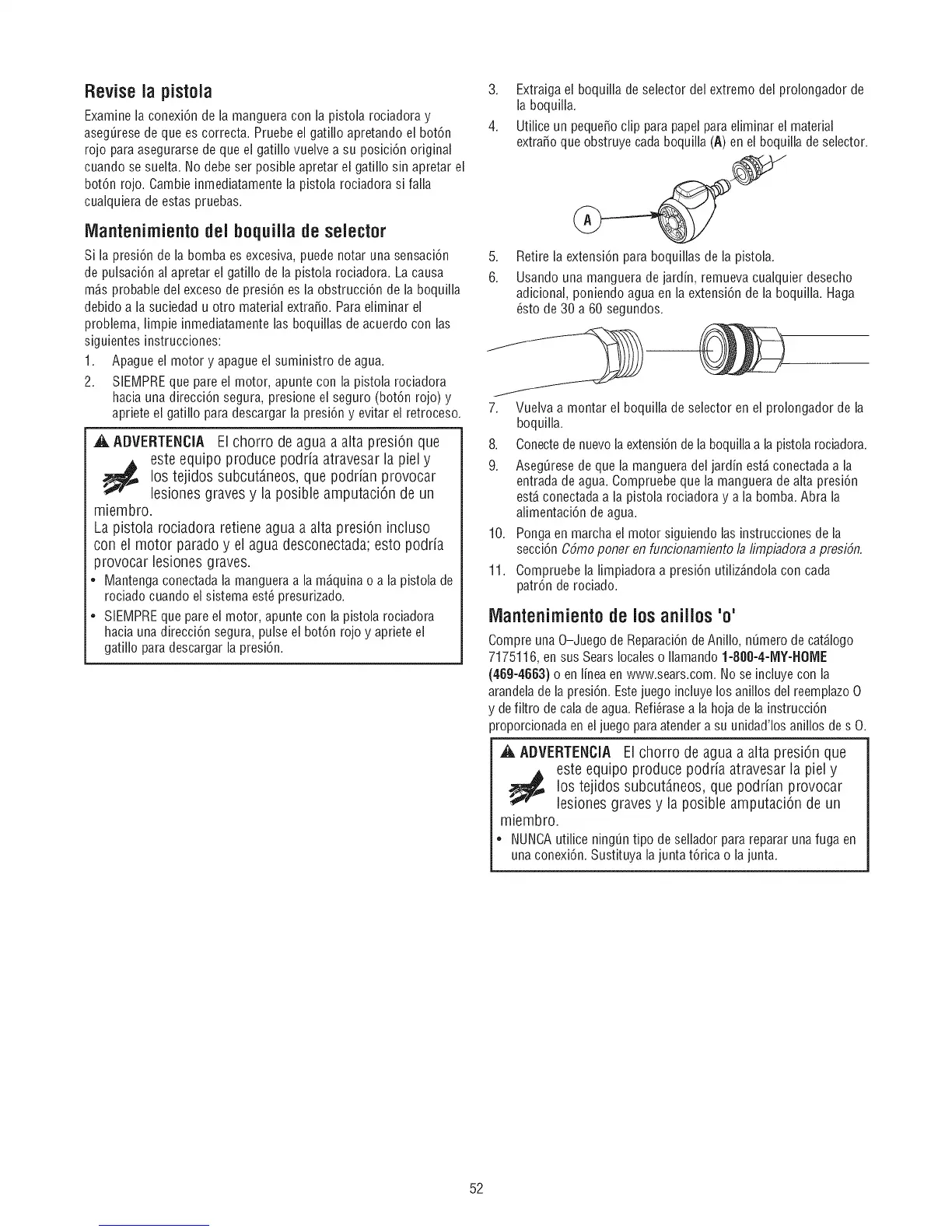 ,A ADVERTENCIA El chorro de agua a alta presi6n que