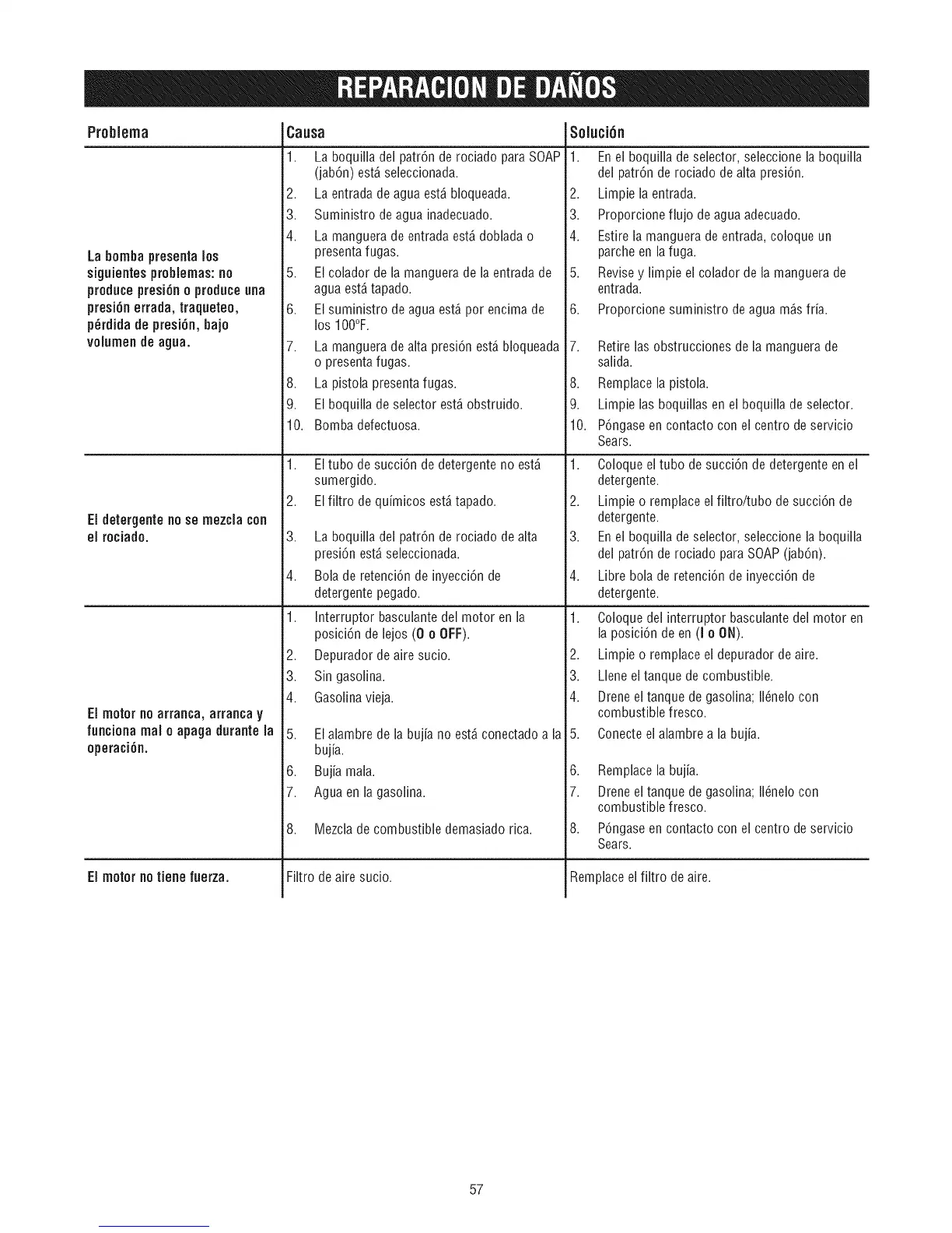 7. La manguera de alta presi6n est_ bloqueada