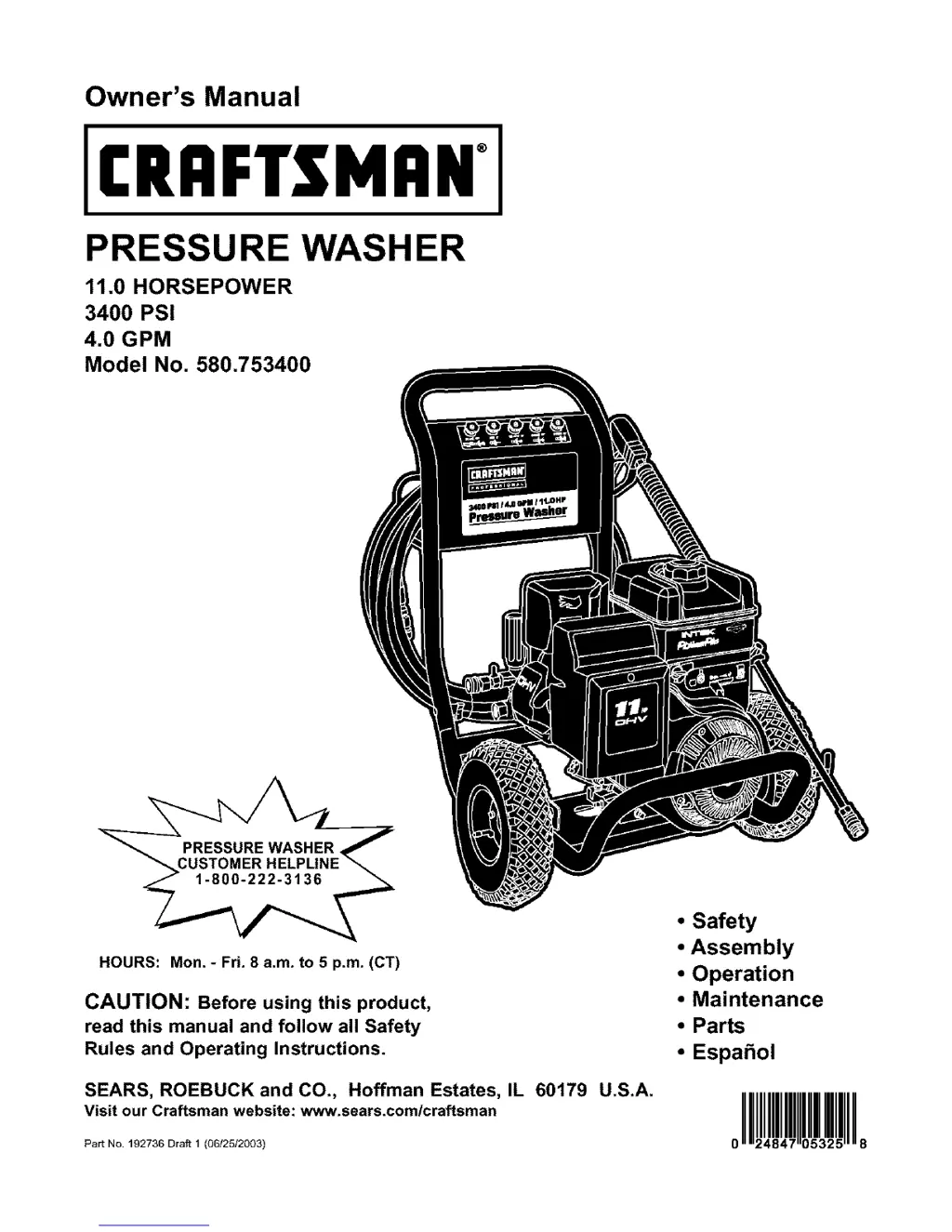 Why won't my Craftsman 580.753400 Pressure Washer engine start or runs rough?