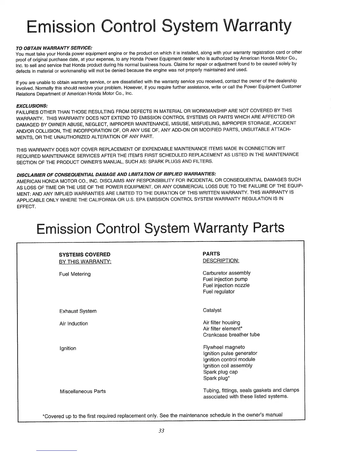 WARRANTY. THIS WARRANTY DOES NOT EXTEND TO EMISSION CONTROL SYSTEMS OR PARTS WHICH ARE AFFECTED OR