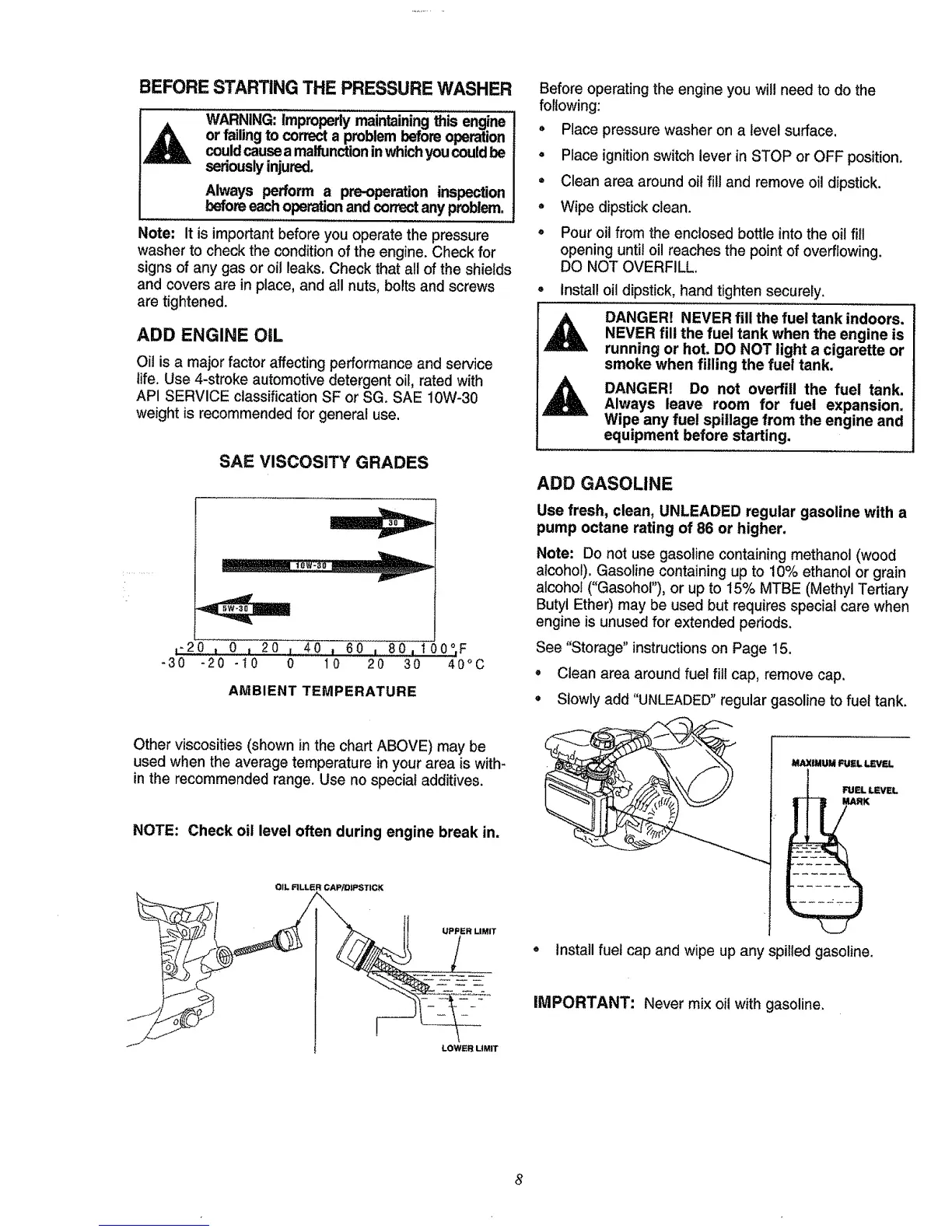° Slowly add "UNLEADED"regular gasoline to fuel tank.