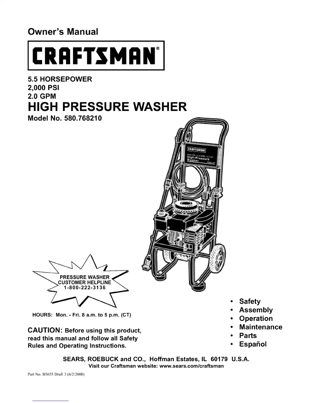 Your Craftsman Pressure Washer engine might shut down during operation because: * The gasoline tank is empty; fill the fuel tank. * The oil level is low; fill the crankcase to the proper level.