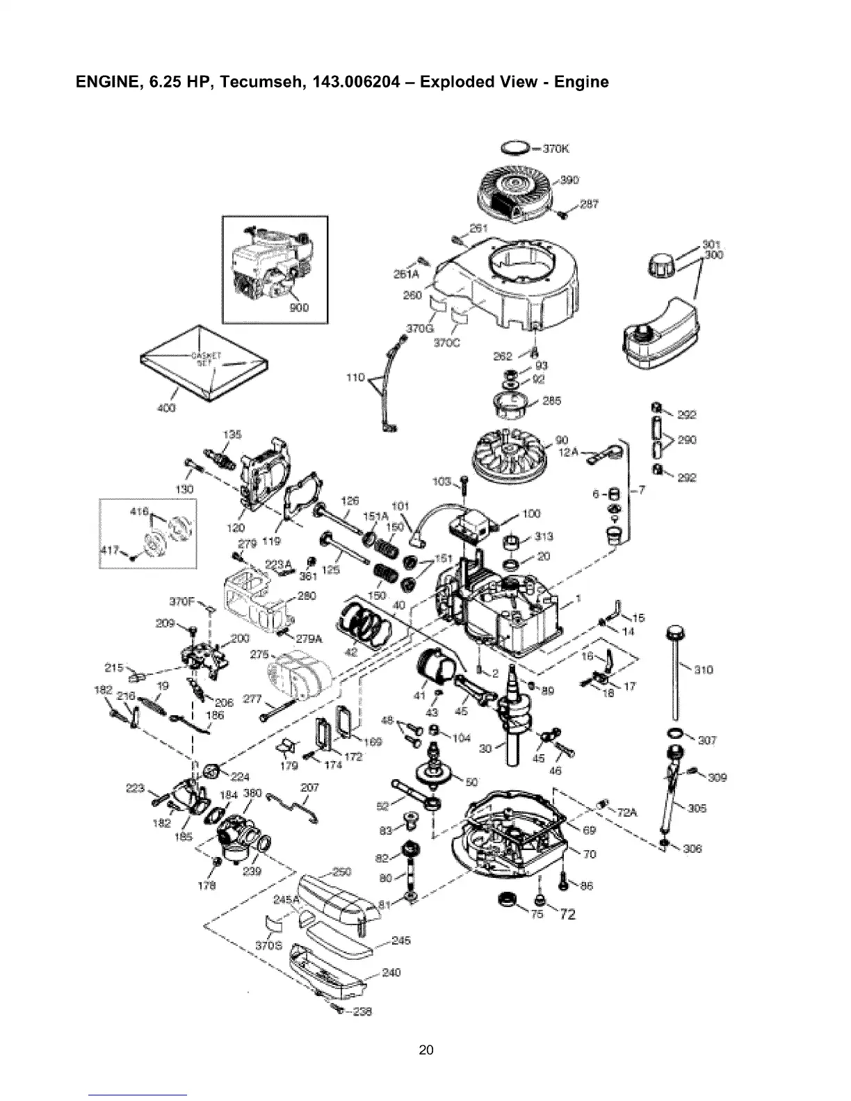 ENGINE, 6.25 HP, Tecumseh, 143.006204 - Exploded View - Engine