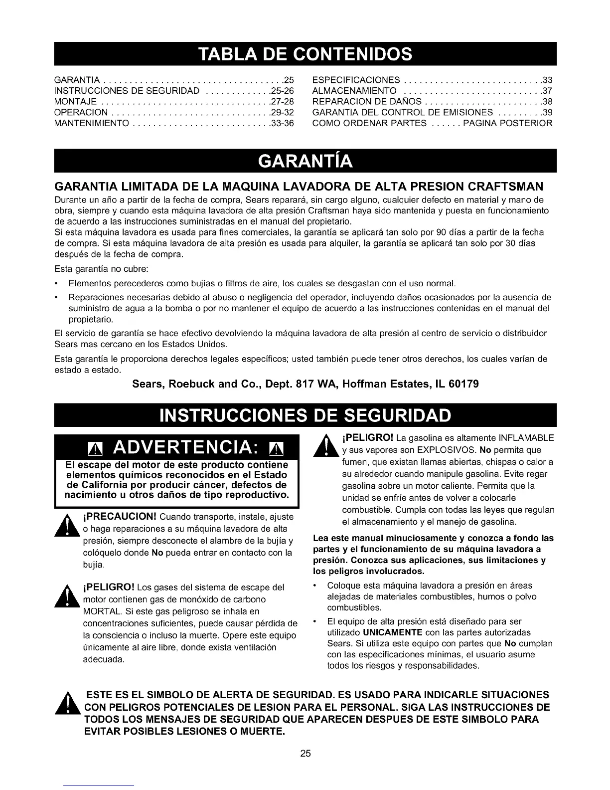 obra, siempre y cuando esta maquina lavadora de alta presi6n Craftsman haya sido mantenida y puesta en funcionamiento