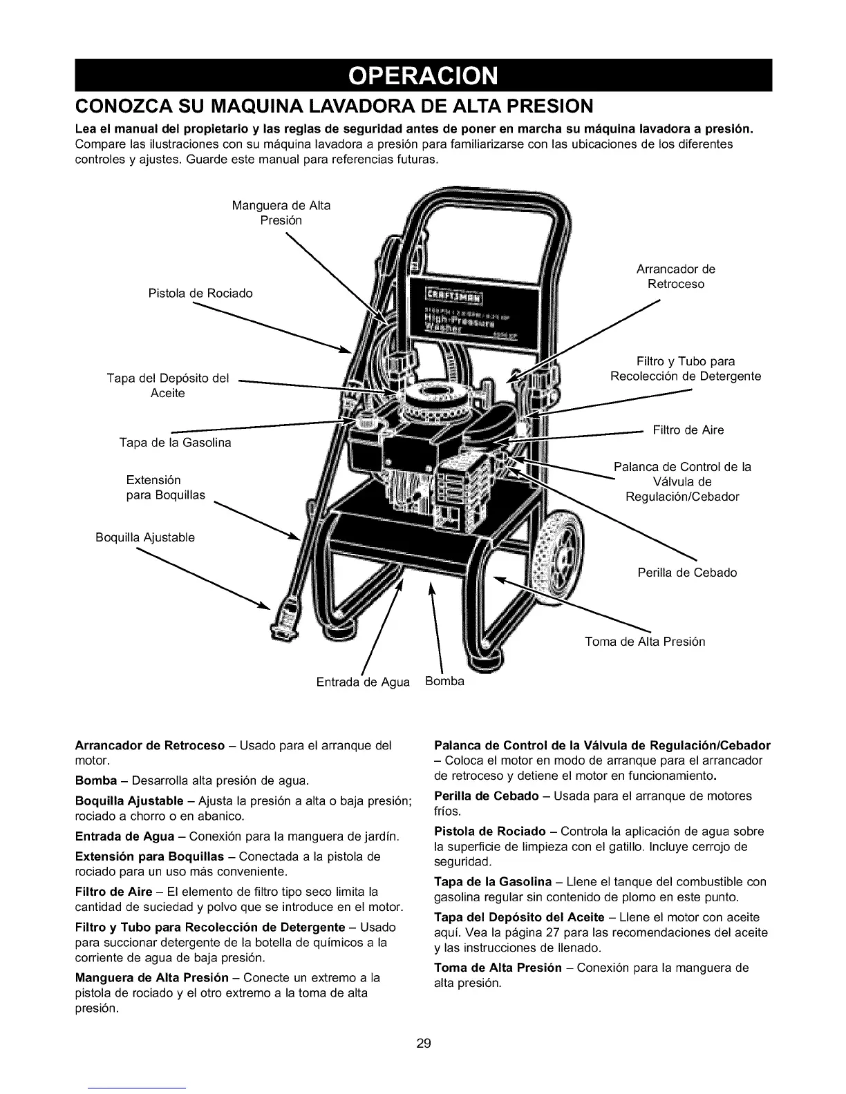 Compare las ilustraciones con su maquina lavadora a presiOn para familiarizarse con las ubicaciones de los diferentes
