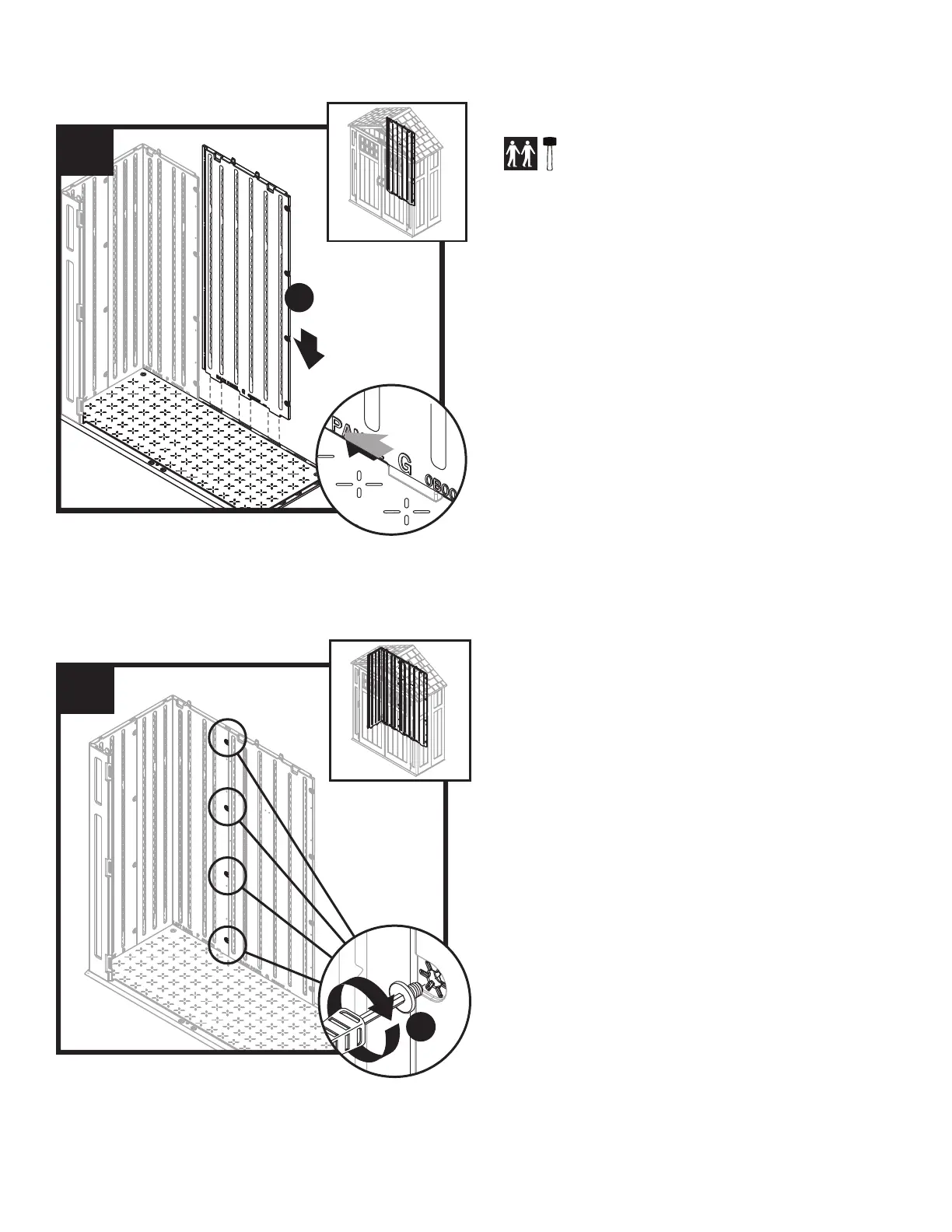 Asegure el panel posterior con cuatro pernos “Easy Bolt” (R).