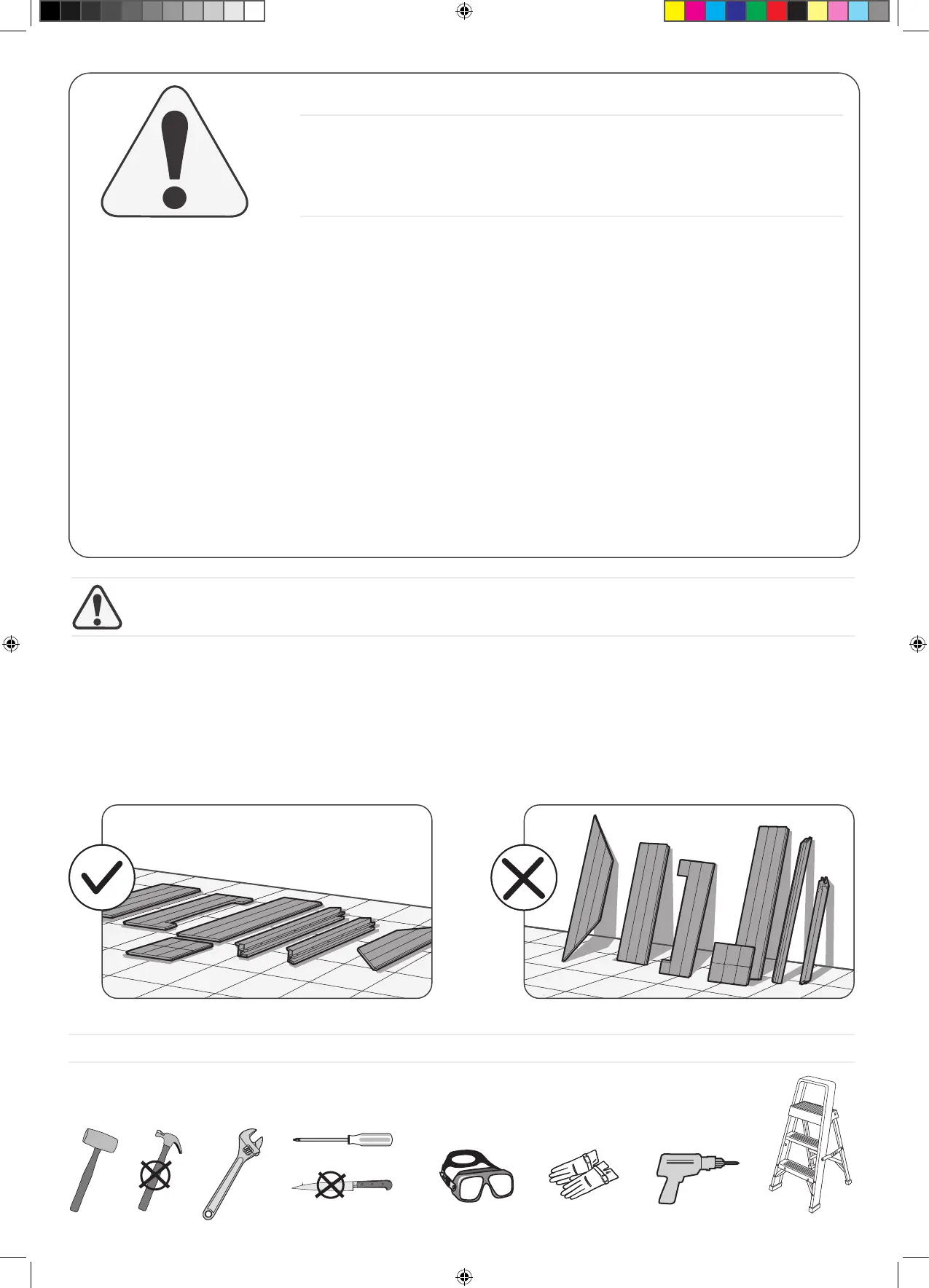le sol. Évitez de monter dessus ou d’y poser tout d’objet | La manipulation et l’assemblage des panneaux nécessitent 2 personnes.