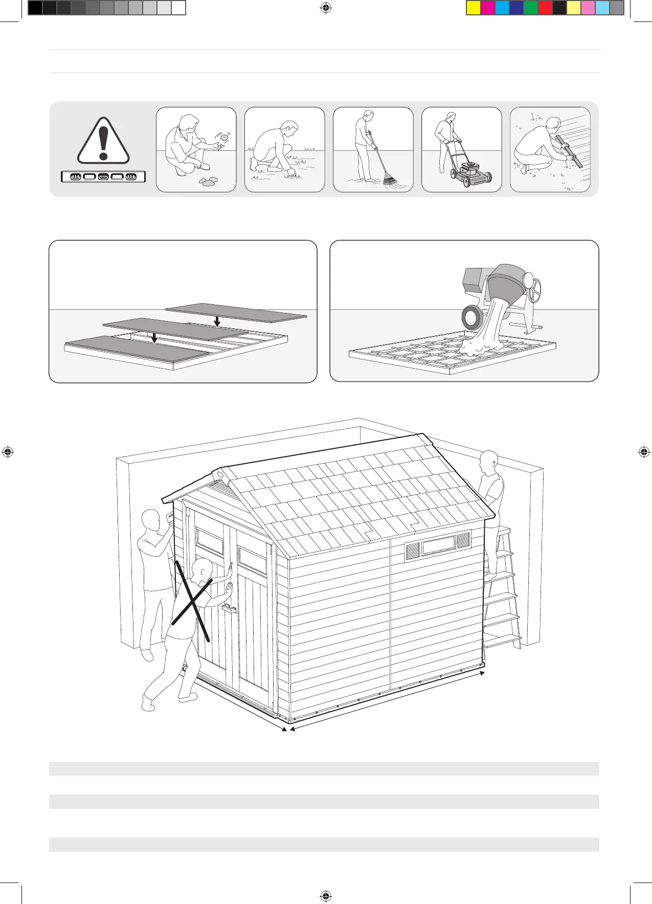 For external access during assembly, make sure to leave enough room around the outside of the shed assembly site.