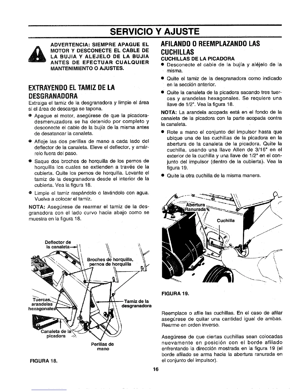• Apague el motor, asegt_rese de que la picadora-