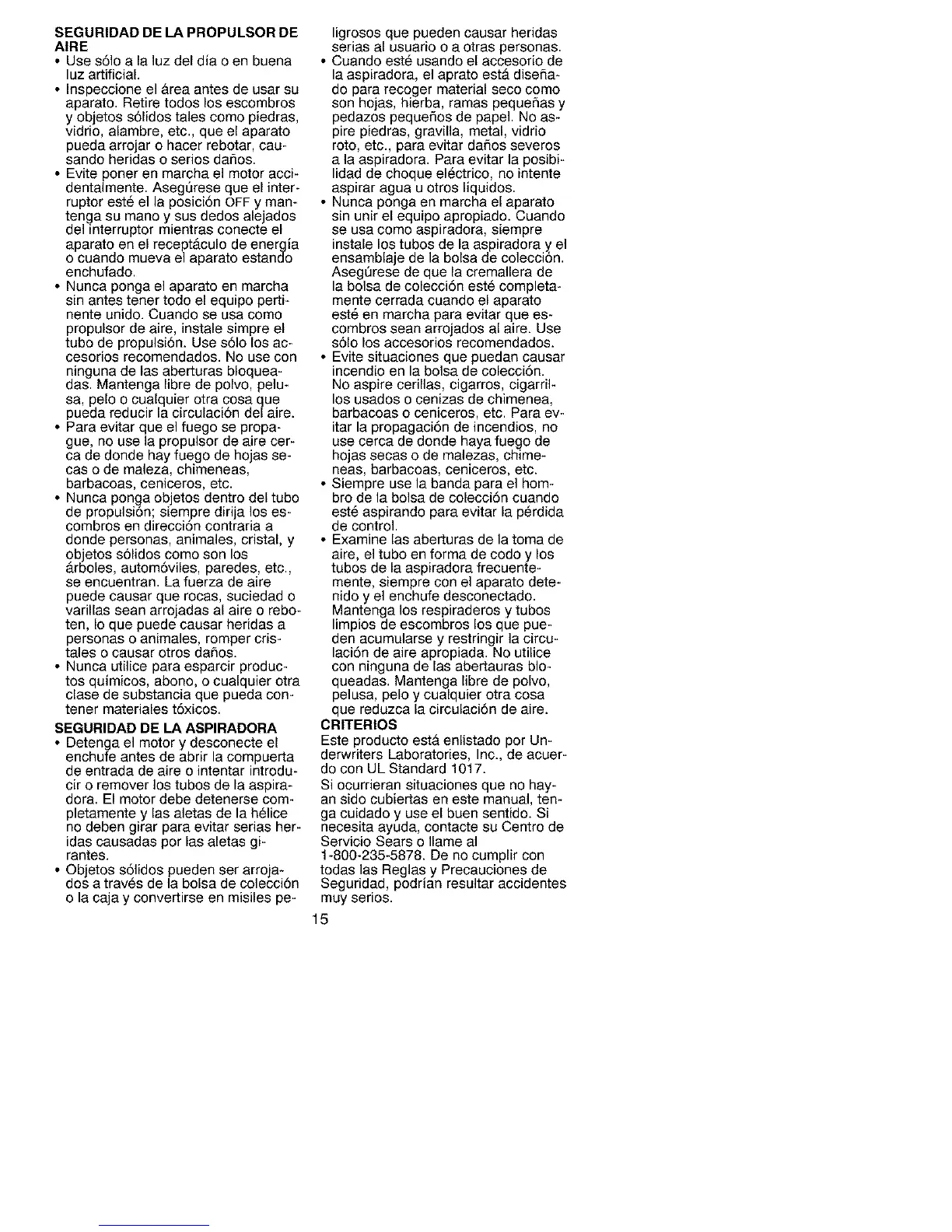 SEGURIDAD DE LA ASPIRADORA