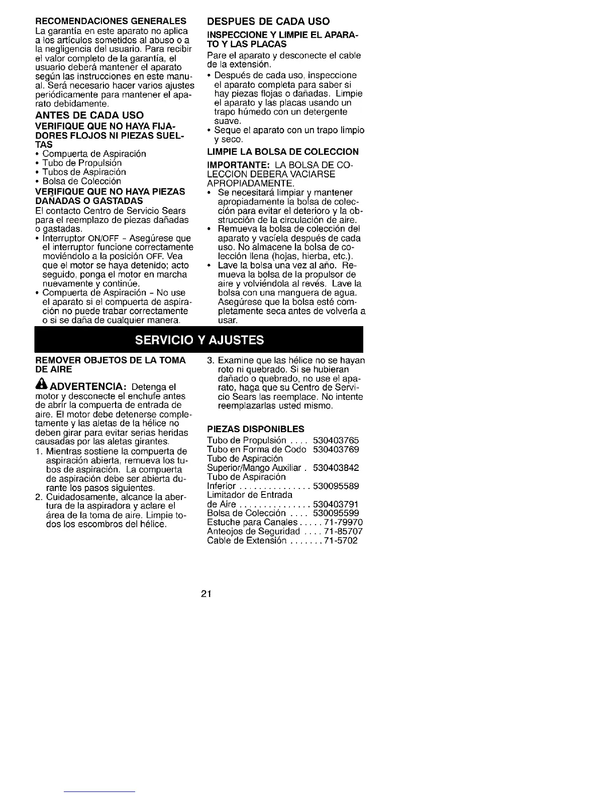 • Despu_s de cada uso, inspeccione