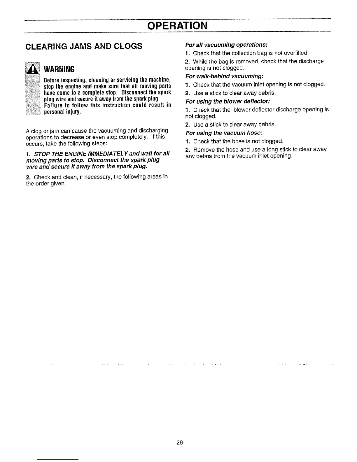 A clog or jam can cause the vacuuming and discharging