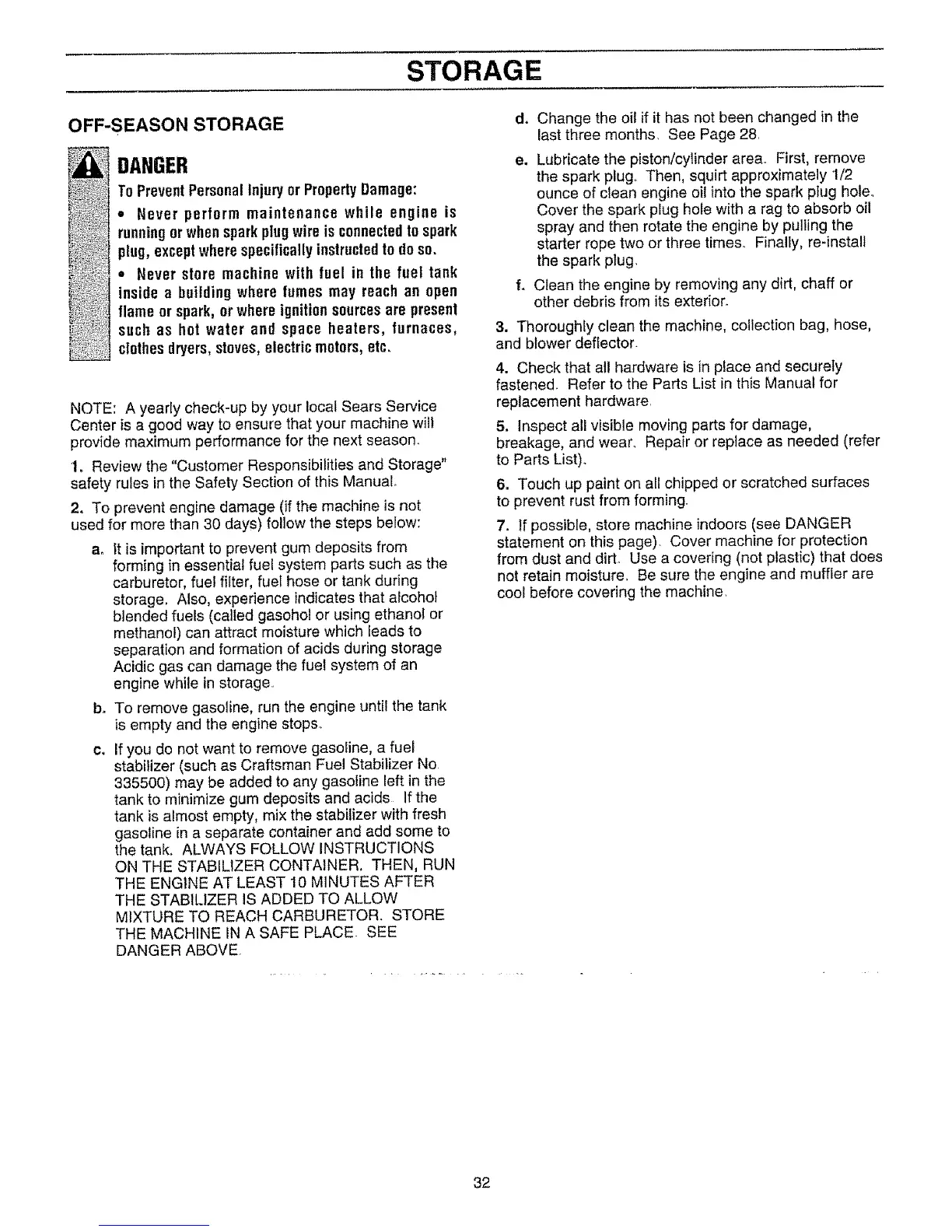 7. If possible, store machine indoors (see DANGER