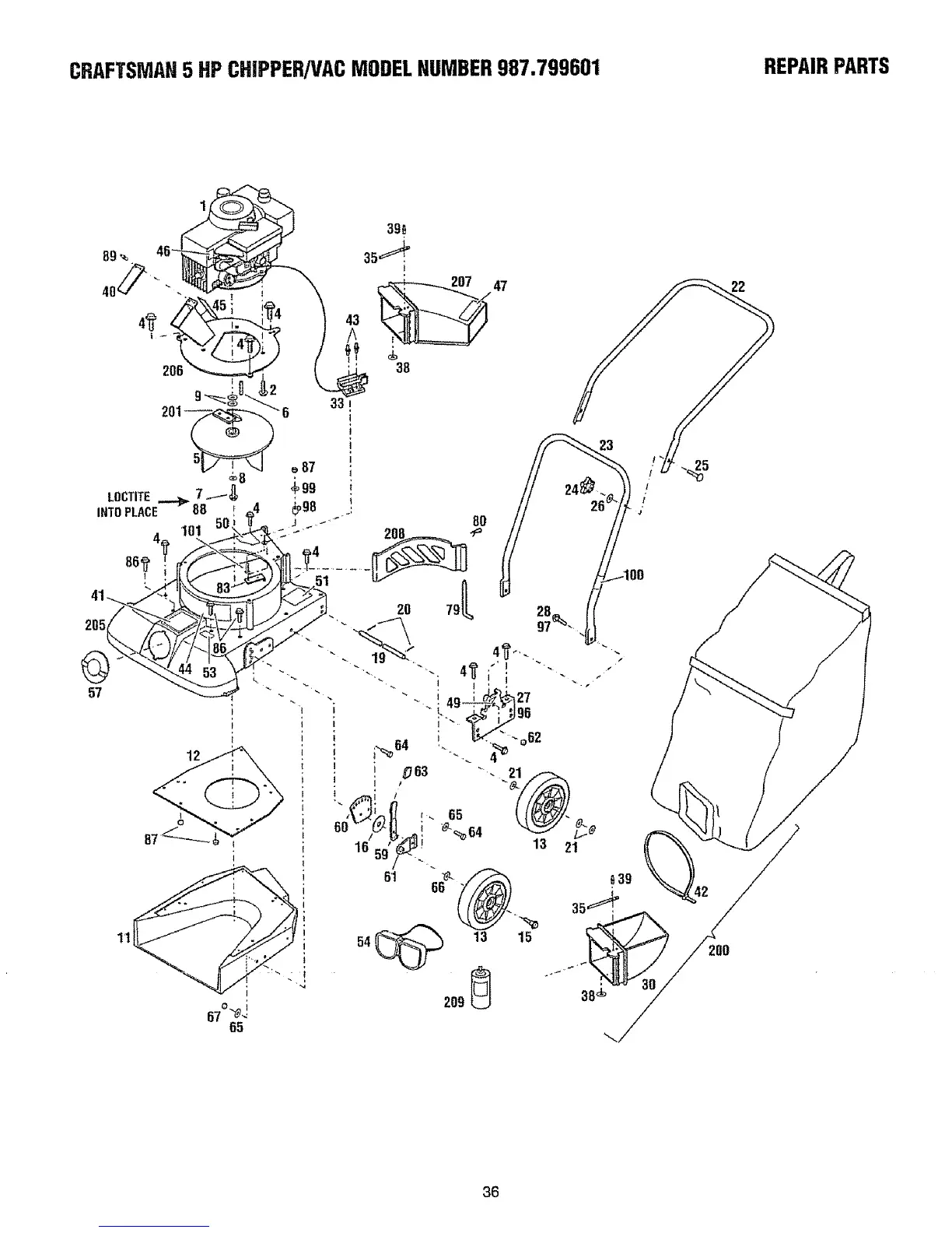CRAFTSMAI!5 HP CHIPPER/VACMODELNUMBER987.799601 REPAIRPARTS