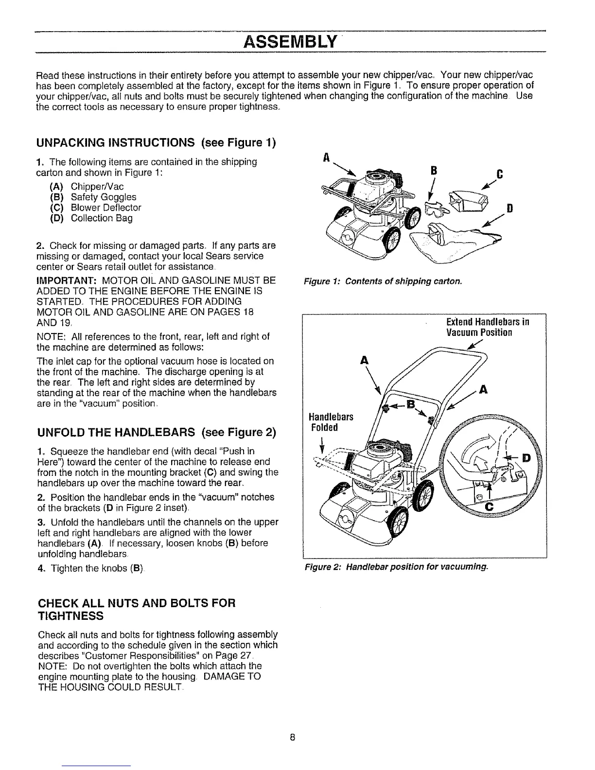 Read these instructions in their entirety before you attempt to assemble your new chipper/vaco Your new chipper/vac