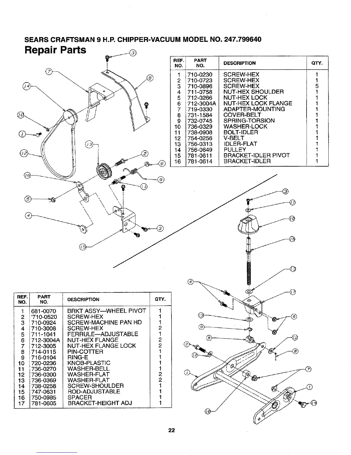 SEARS CRAFTSMAN 9 H.P. CHIPPER-VACUUM MODEL NO, 247.799640