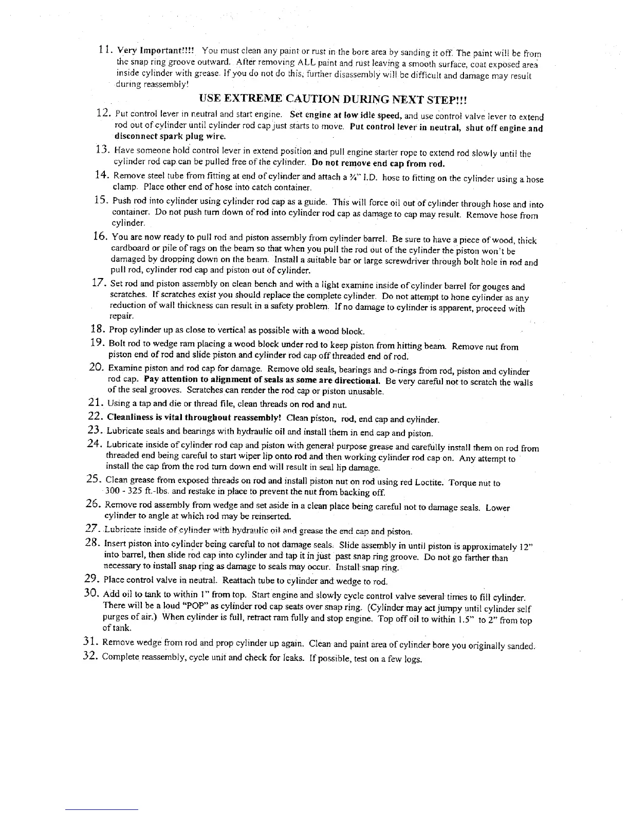 threaded end being careful to start wiper lip onto rod and then working cylinder rod cap on. Any attempt to