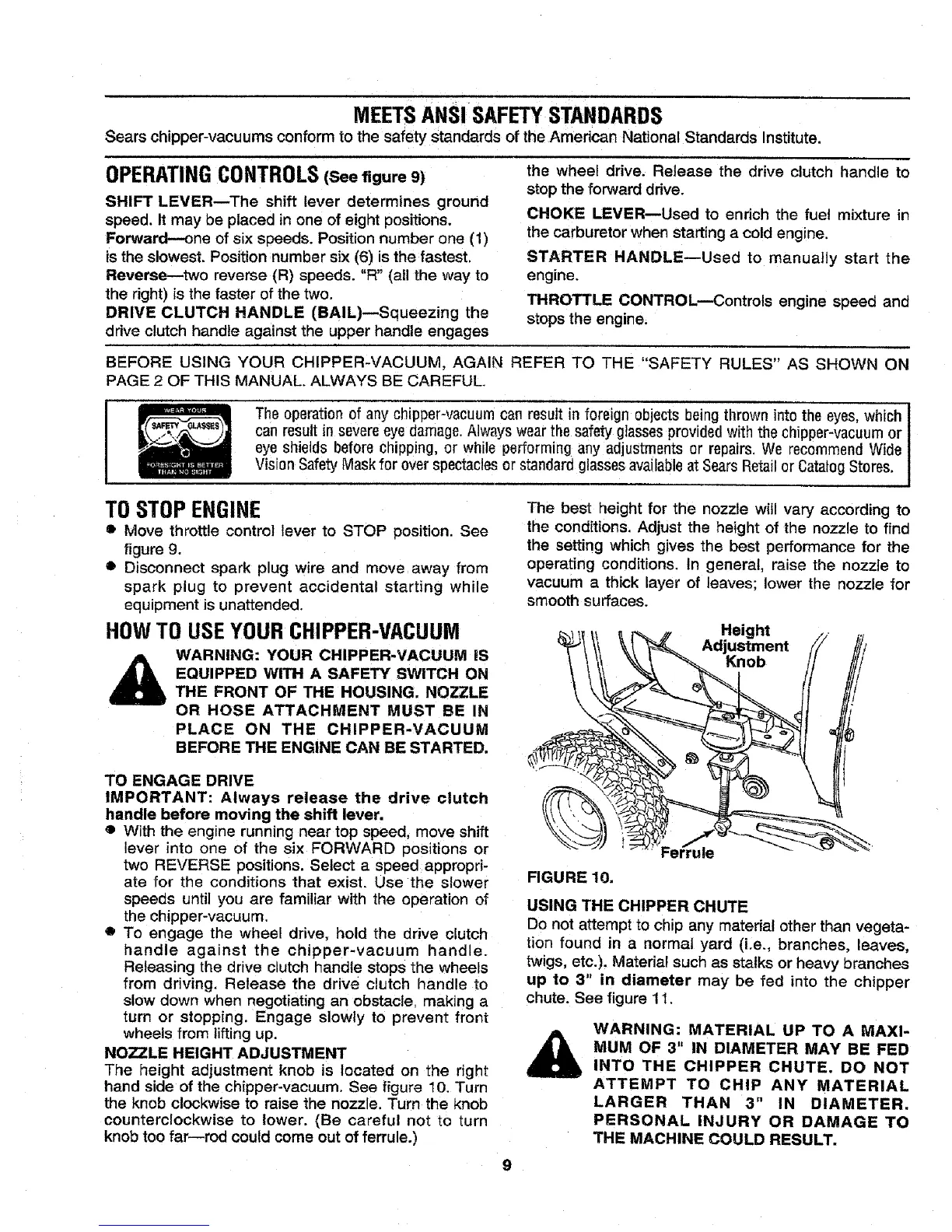 Sears chipper-vacuums conform to the safety standards of the American National Standards InsUtute.