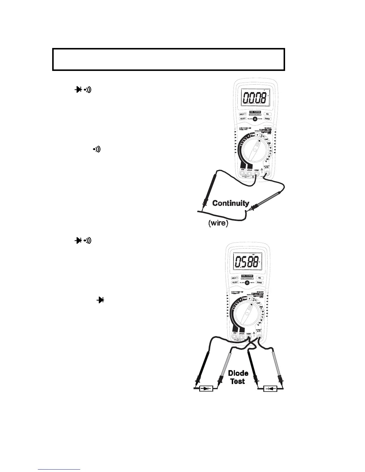 WARNING: To avoid electric shock, never measure continuity