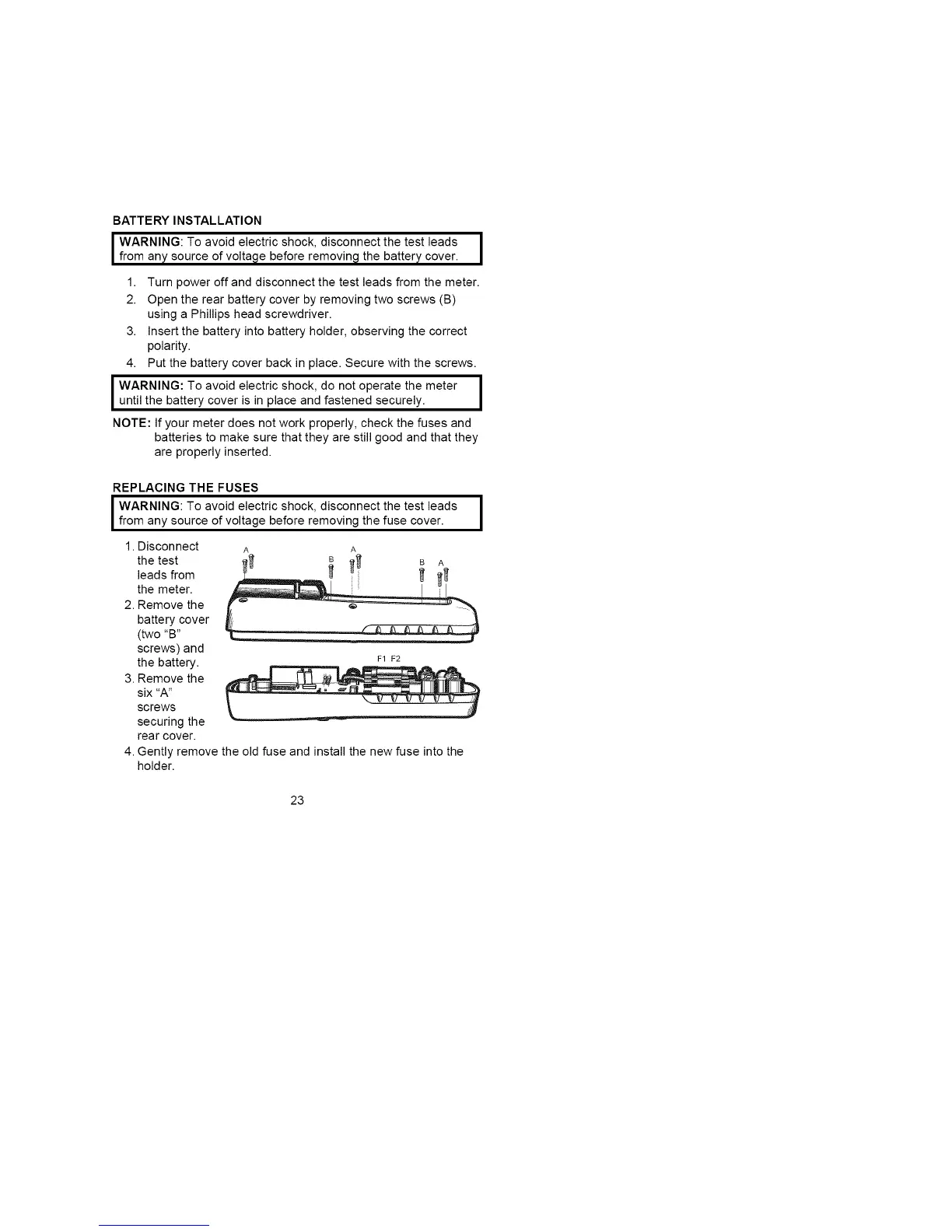 NOTE: If your meter does not work properly, check the fuses and