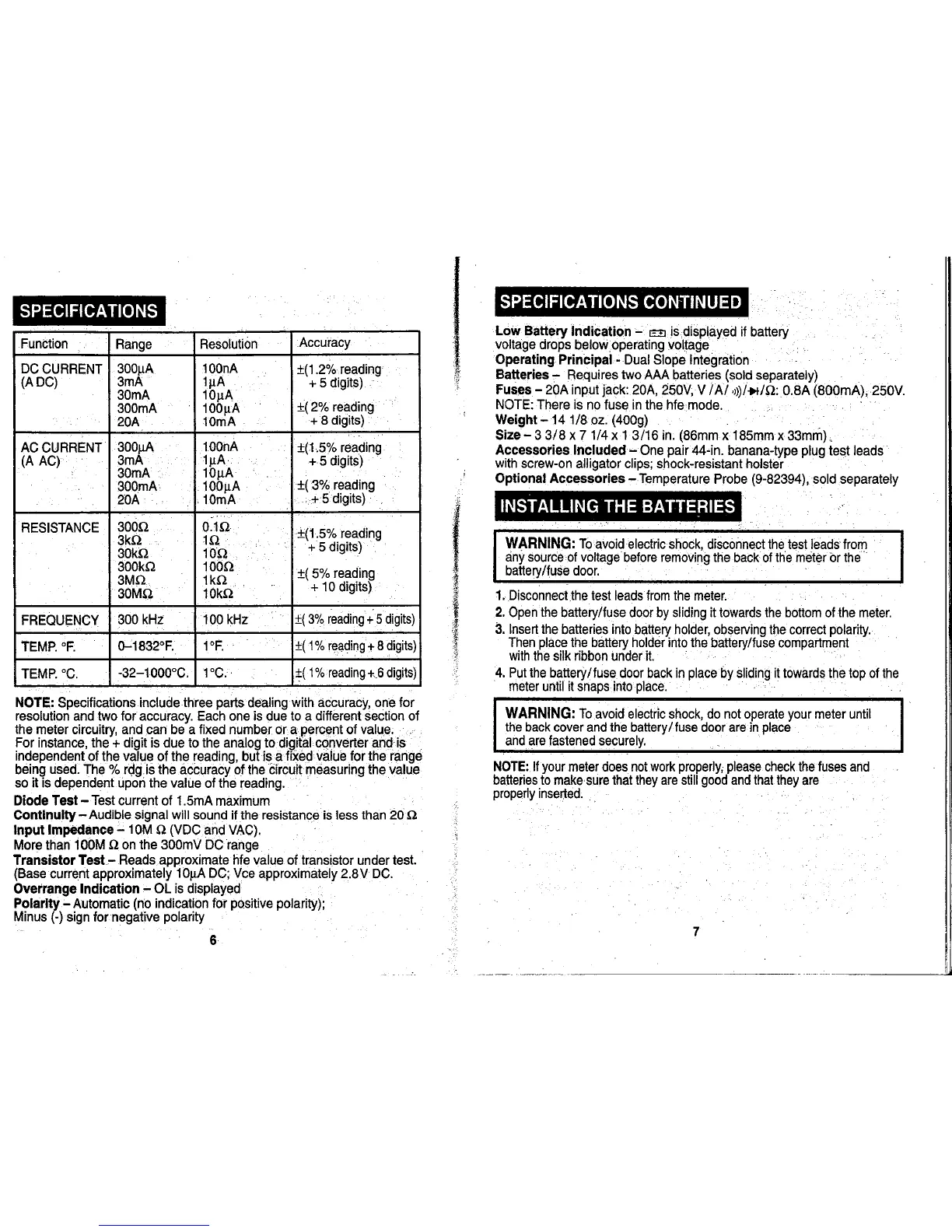 Craftsman 82028 - Physical and Accessory Specifications; Installation and Setup; Installing the Batteries