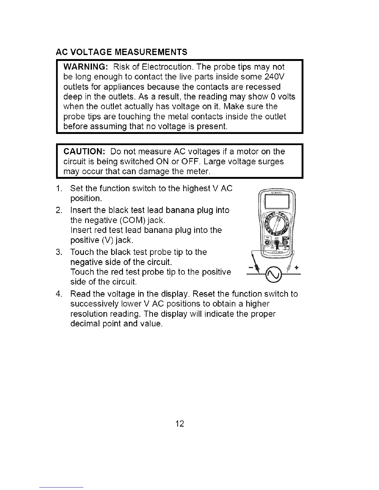 I AUTION: Do not measure AC voltages if a motor on the I