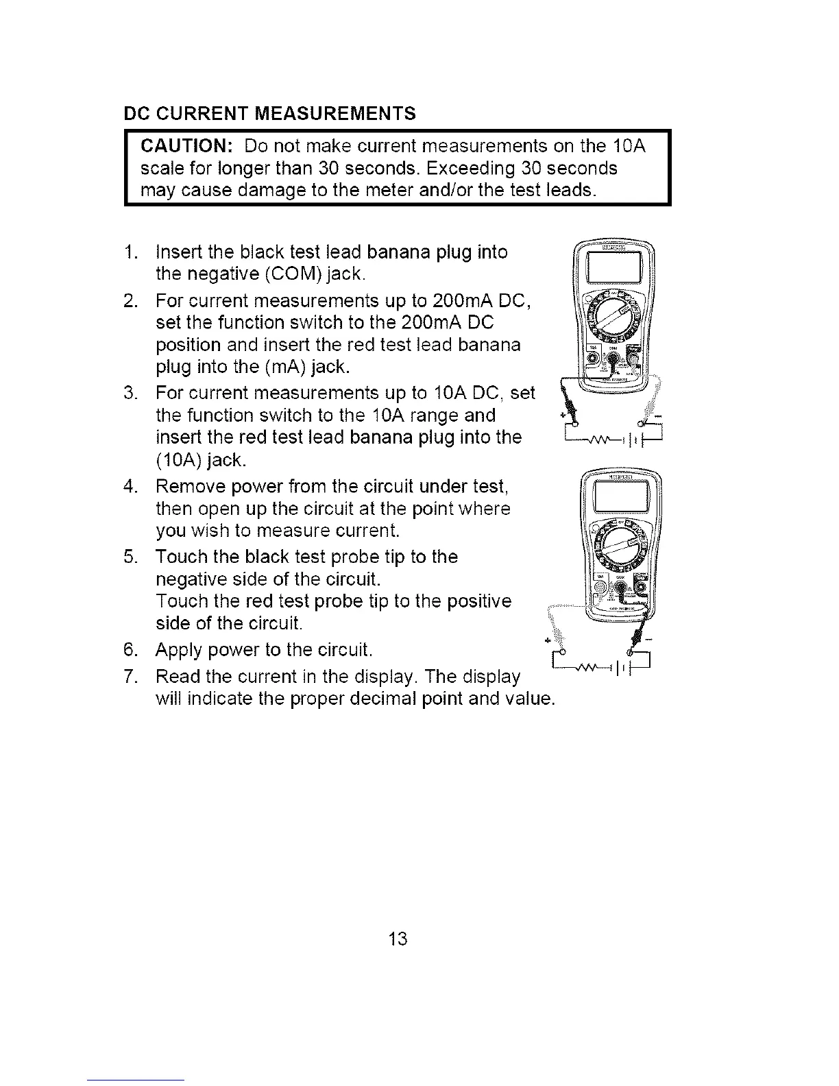 2. For current measurements up to 200mA DC,